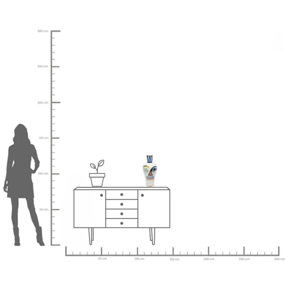 - Mit ihrem abstrakten Gesichtsmotiv in satten Farben setzt die Vase künstlerische Akzente