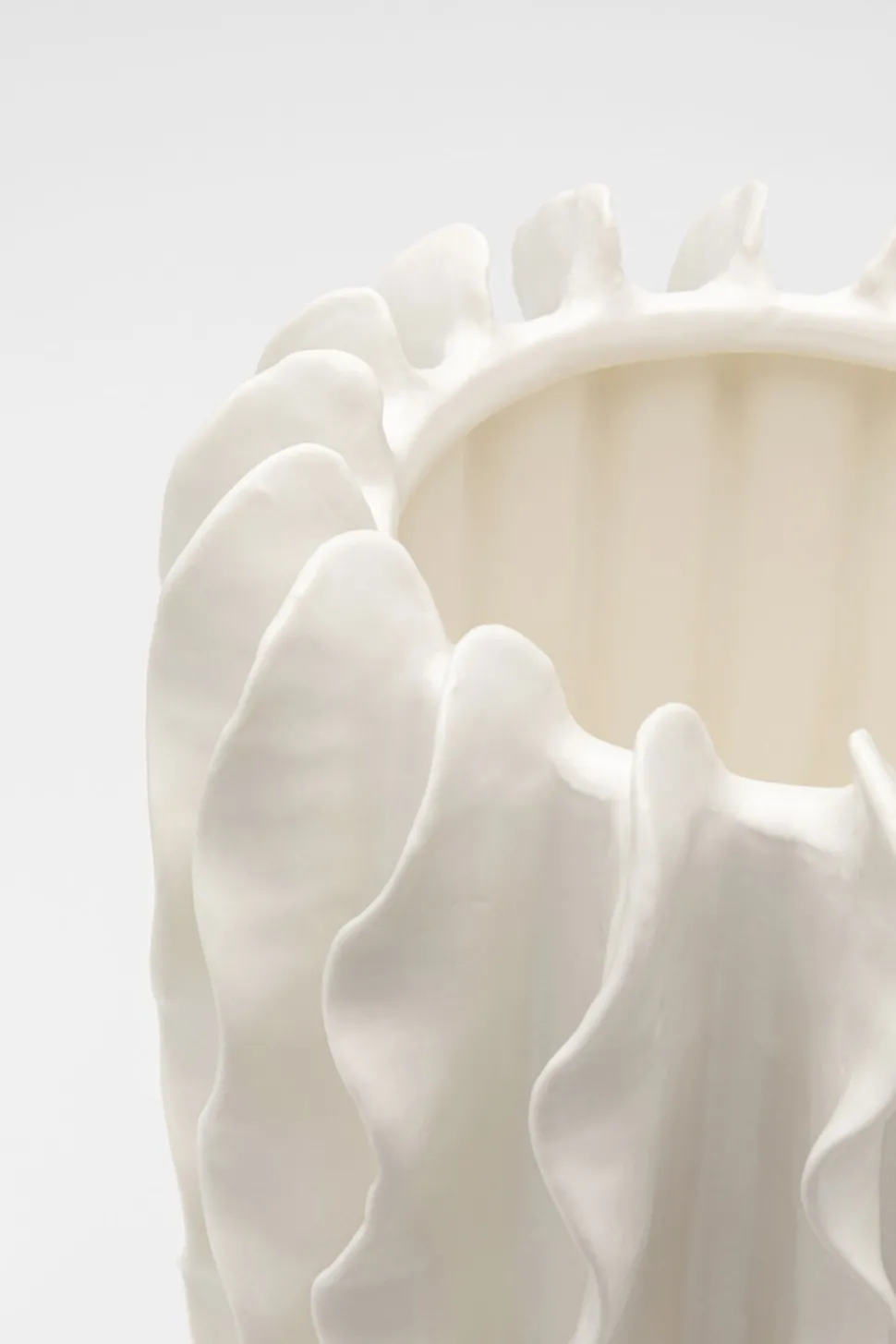 - Die weiße Vase besticht durch ihre außergewöhnlich geschwungene Silhouette