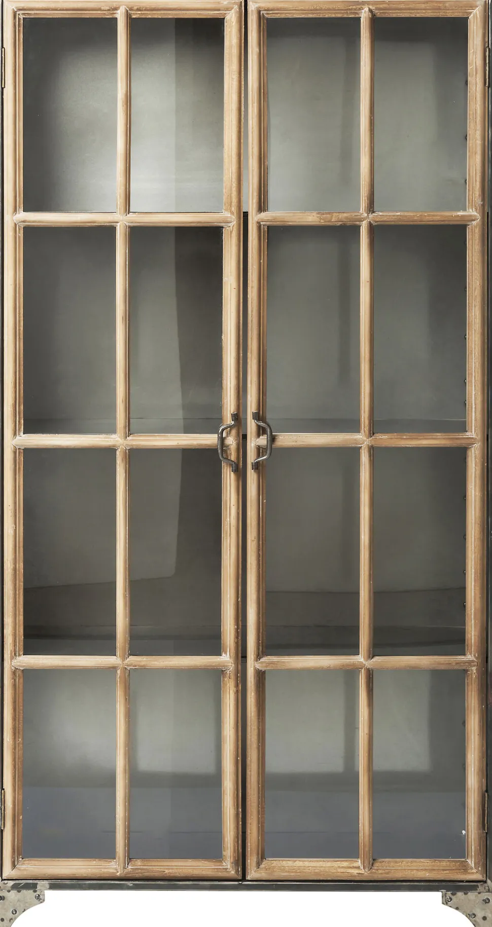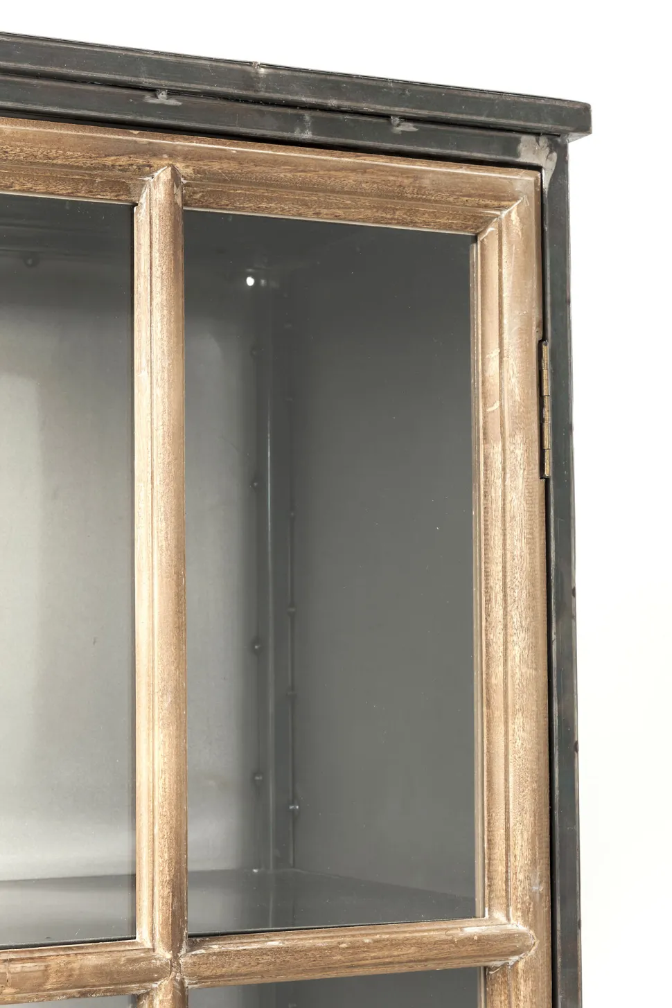 - Im Industrial-Stil: hohe Vitrine mit Korpus aus lackiertem, anthrazitfarbenem Stahl, Türrahmen aus Massivholz und Glastüren