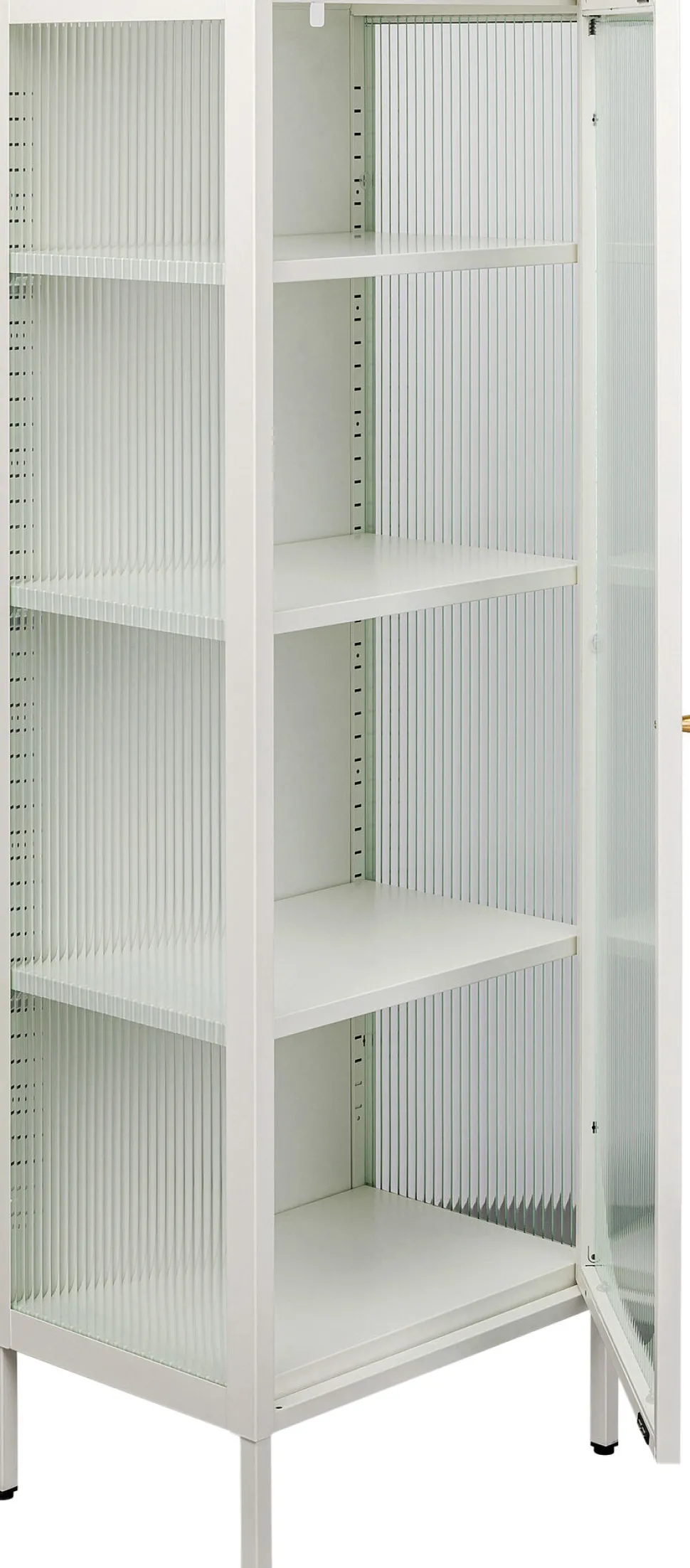 - Harmonische Elemente aus geriffeltem Glas und goldene Griffe verleihen dem Design einen stilvollen Charakter
