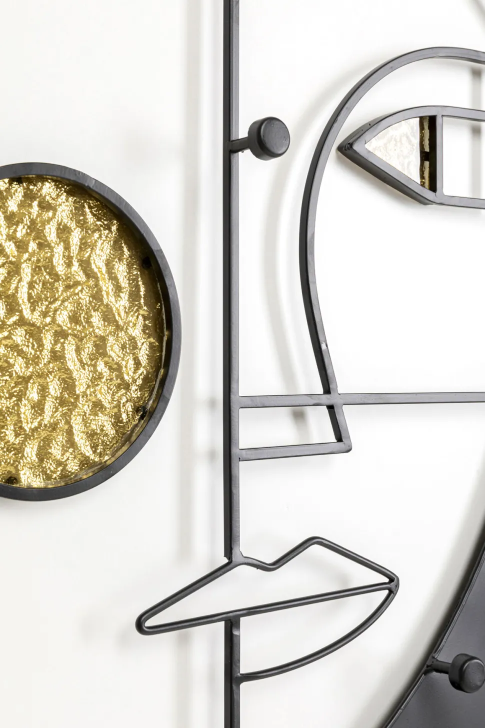- Kunstvolle Wandgarderobe in Schwarz und Gold, 90 x 60.5 x 5 Zentimeter (H/B/T)