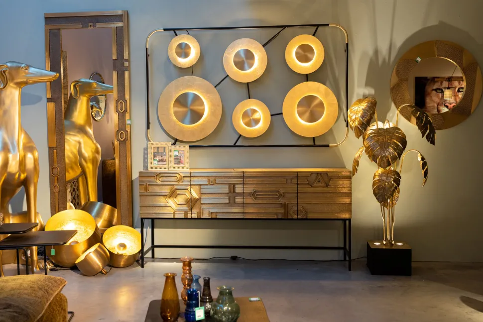 - Wandspiegel in Gold aus Metall, 80 x 80 x 7 Zentimeter (H/B/T)