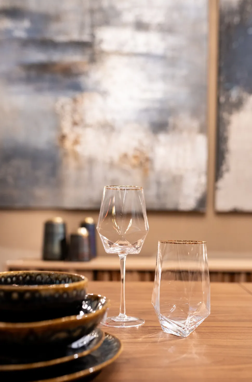 - Der glänzende, zarte Rand in Gold verleiht dem Glas eine elegante und luxuriöse Note, die jedes Getränk aufwertet