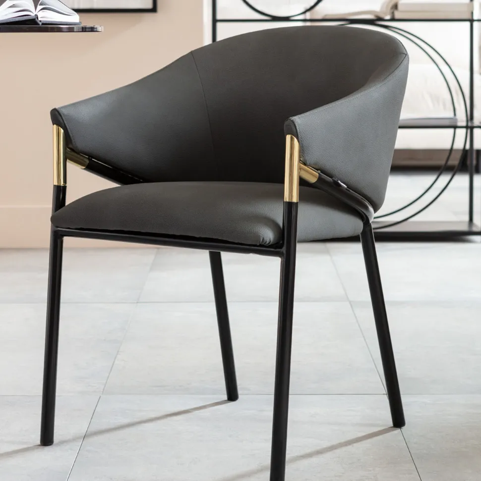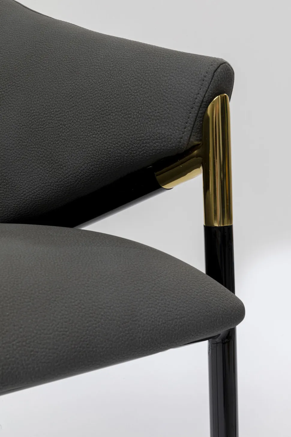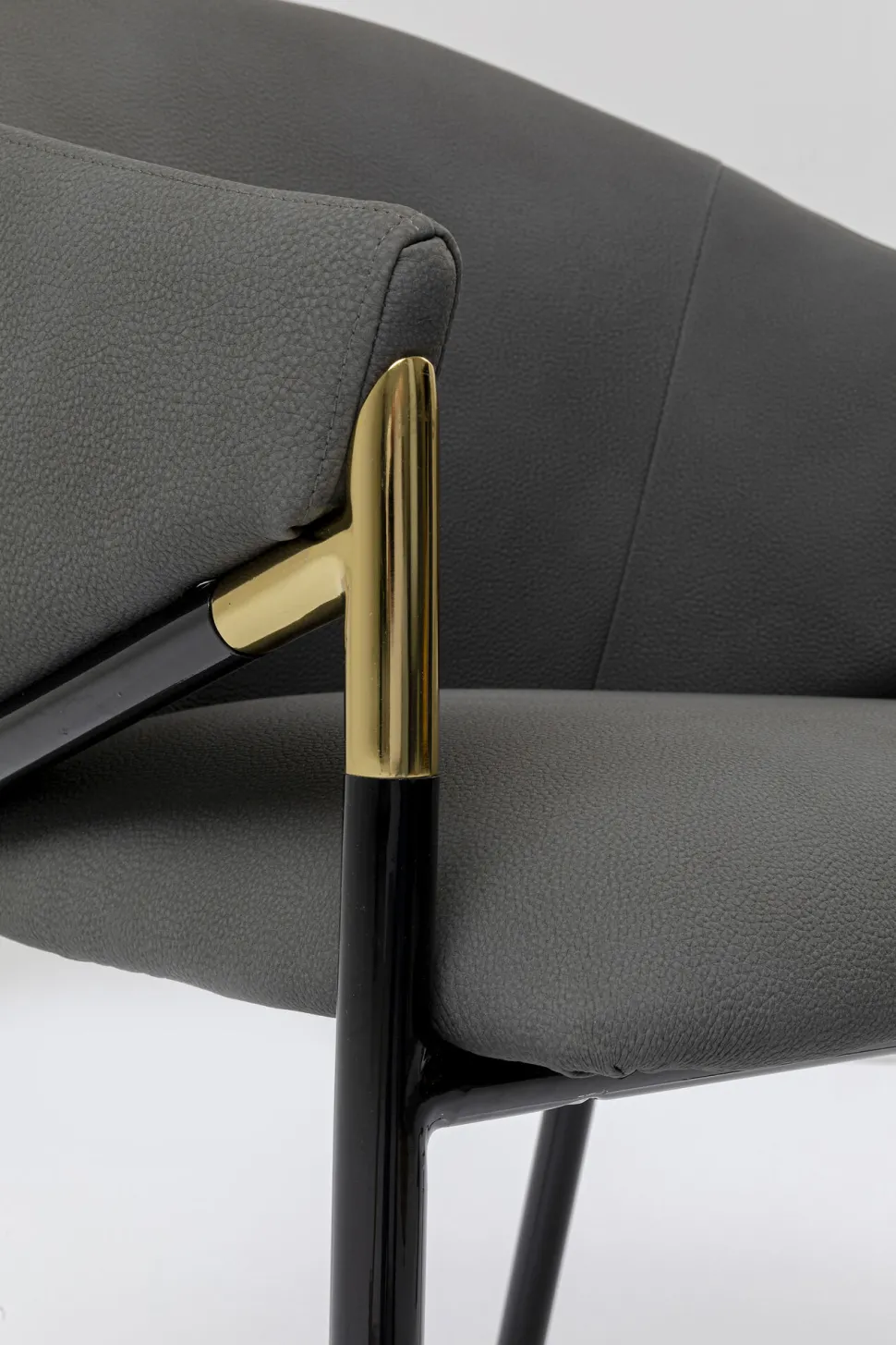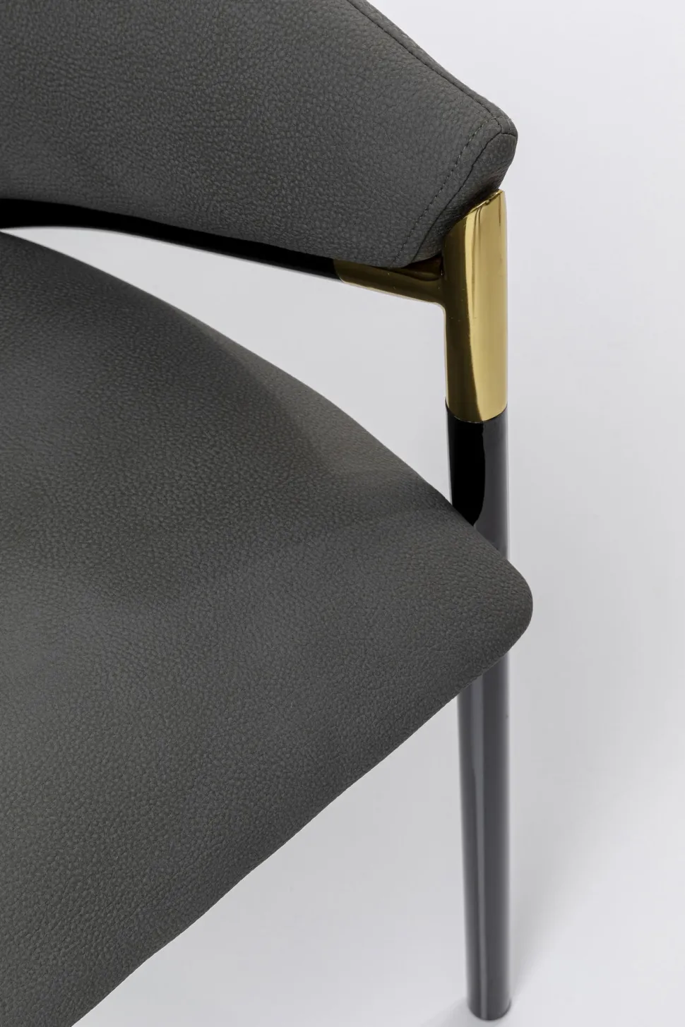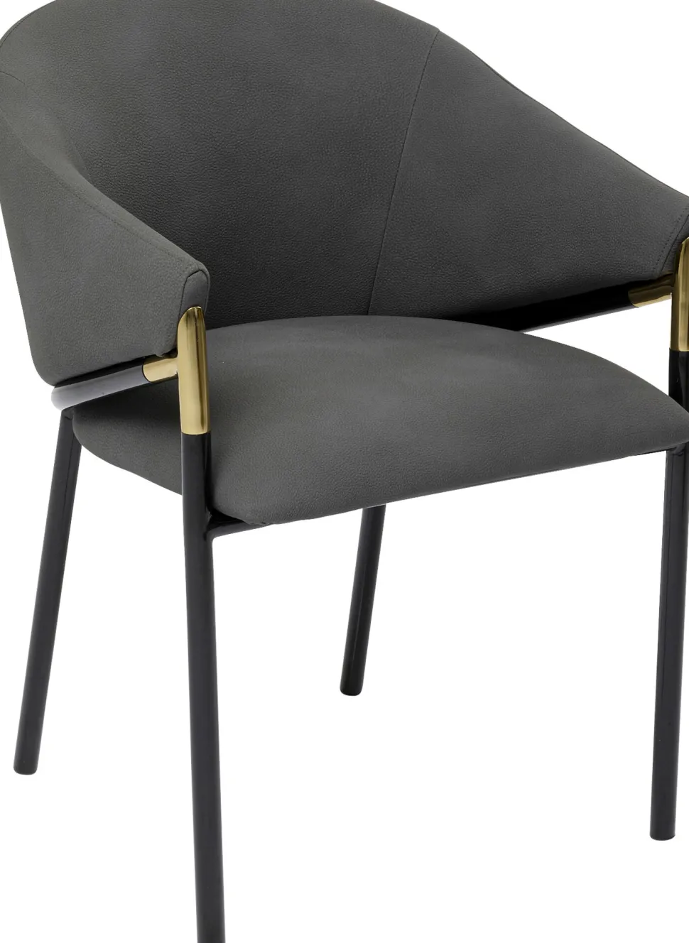 - Klassischer Stuhl mit gerundeter Rücken- und Armlehne in eleganter Formensprache, in Grau und Schwarz mit messingfarbenem Akzent