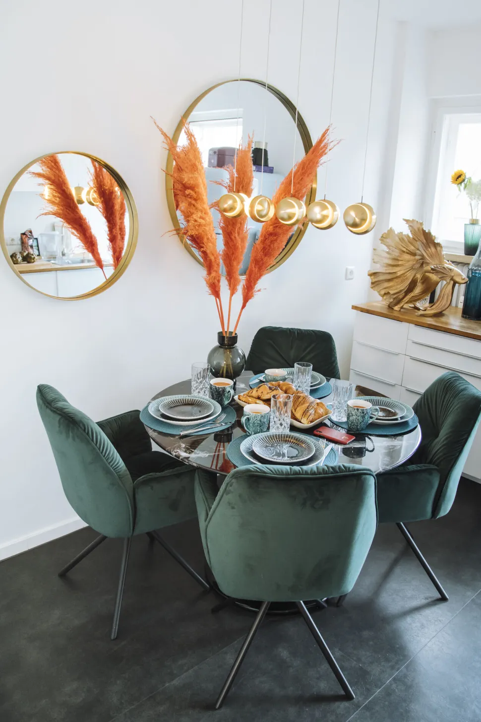 - Dank der weichen Polsterung in Samtoptik sitzt man auf diesem Esszimmerstuhl auch an langen Abenden richtig gut