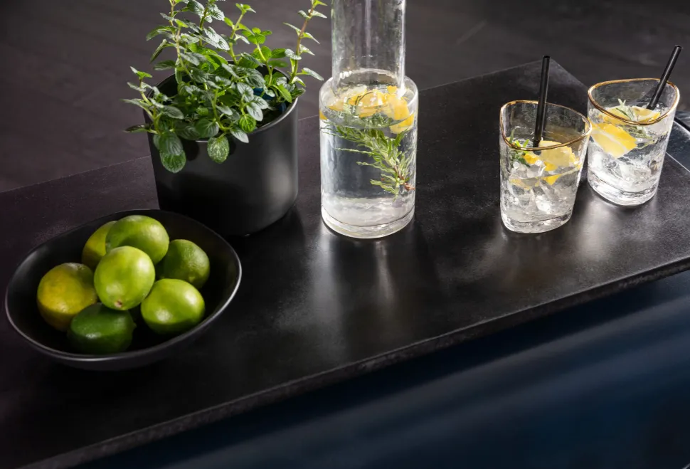 - Viele praktische Funktionen wie Flaschenhalter und Schienen für Gläser