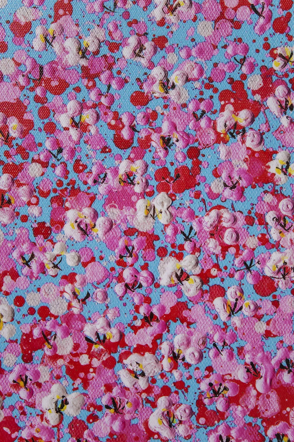 - Die handgemalten Blütendetails und Farbtupfer verleihen dem Gemälde eine hübsche Oberflächenstruktur