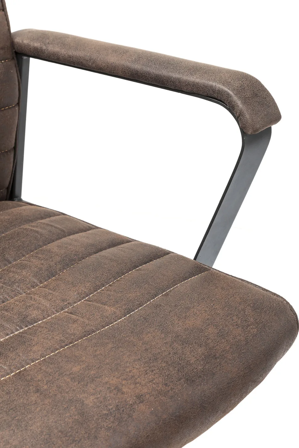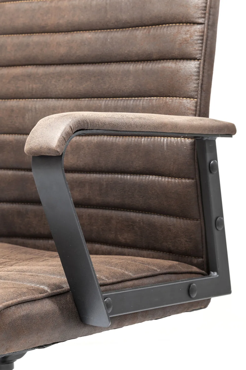 - Der Drehstuhl in Braun ist stufenlos per Gasdruckfeder höhenverstellbar, 360 Grad drehbar und verfügt über eine individuell einstellbare Wippfunktion