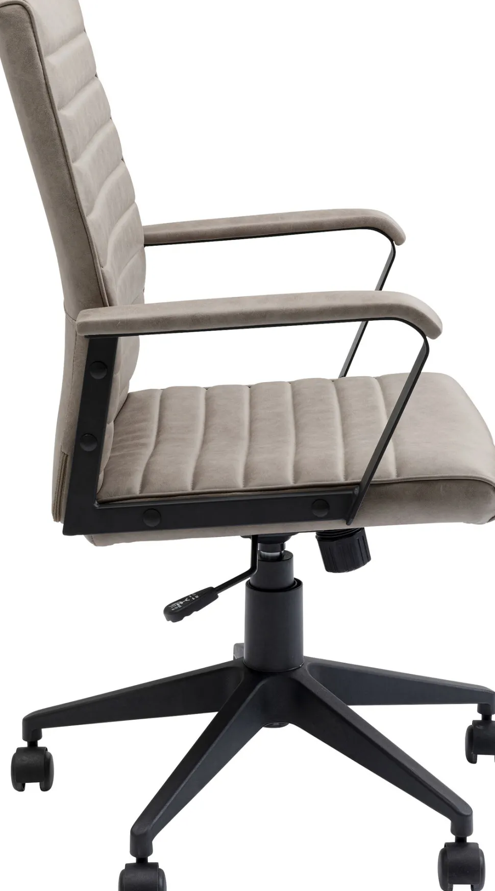 - Der 5-Sternfuß des Büro-Drehstuhls aus Stahl sorgt jederzeit für Stabilität und Sicherheit, die Rollen machen ihn mobil