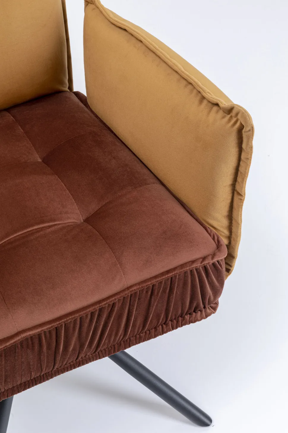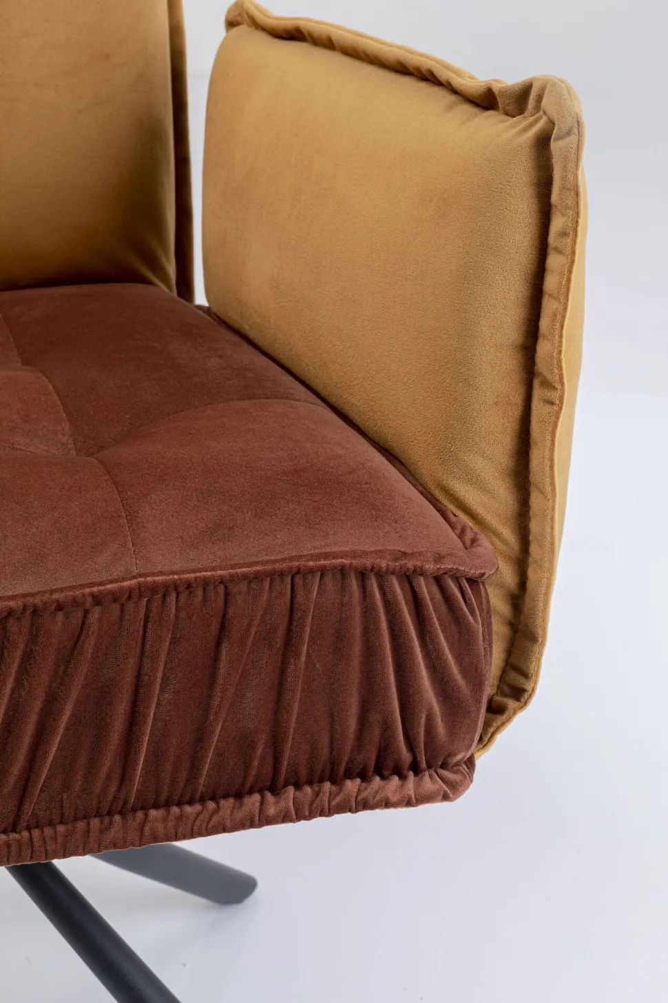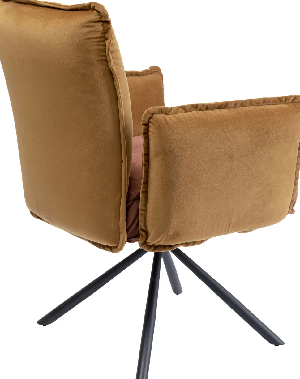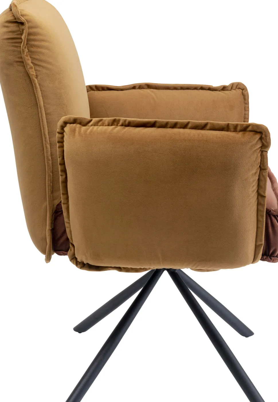 - Zweifarbiger Polsterstuhl in Braun mit Armlehnen und Sternfuß in Schwarz aus Metall, gekleidet in kuschelige Samtoptik