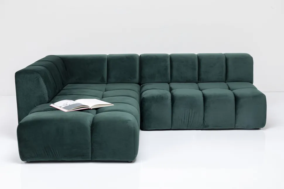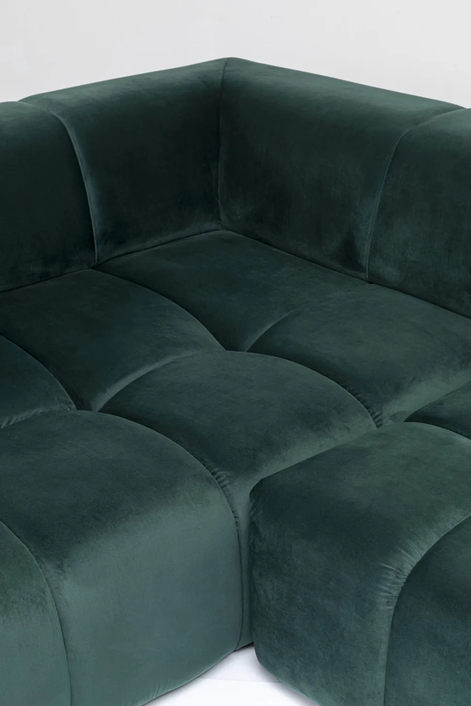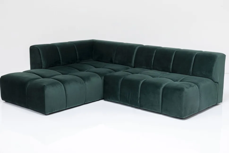 - Ecksofa in dunklem Grün mit Chaiselongue links, strapazierfähiger Bezug in schmeichelnder Samtoptik