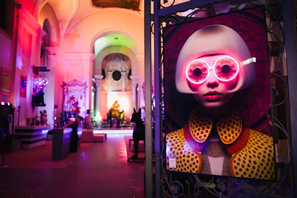 - Der schlichte Rahmen in Schwarz und außergewöhnliche LED-Effekte in knalligem Pink bringen Wand zum Leuchten