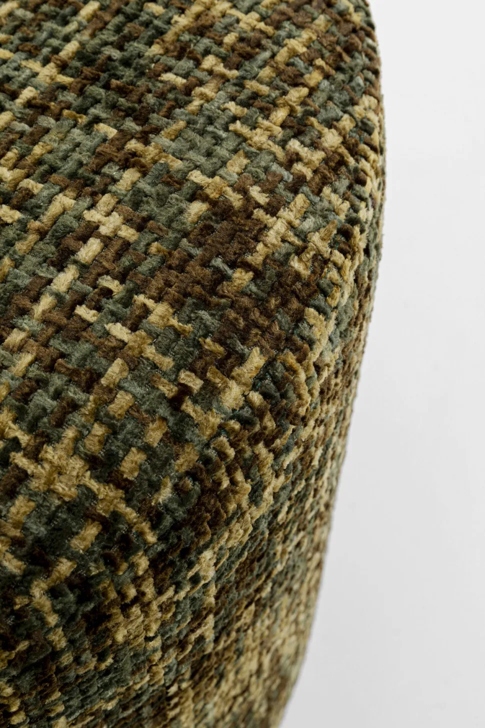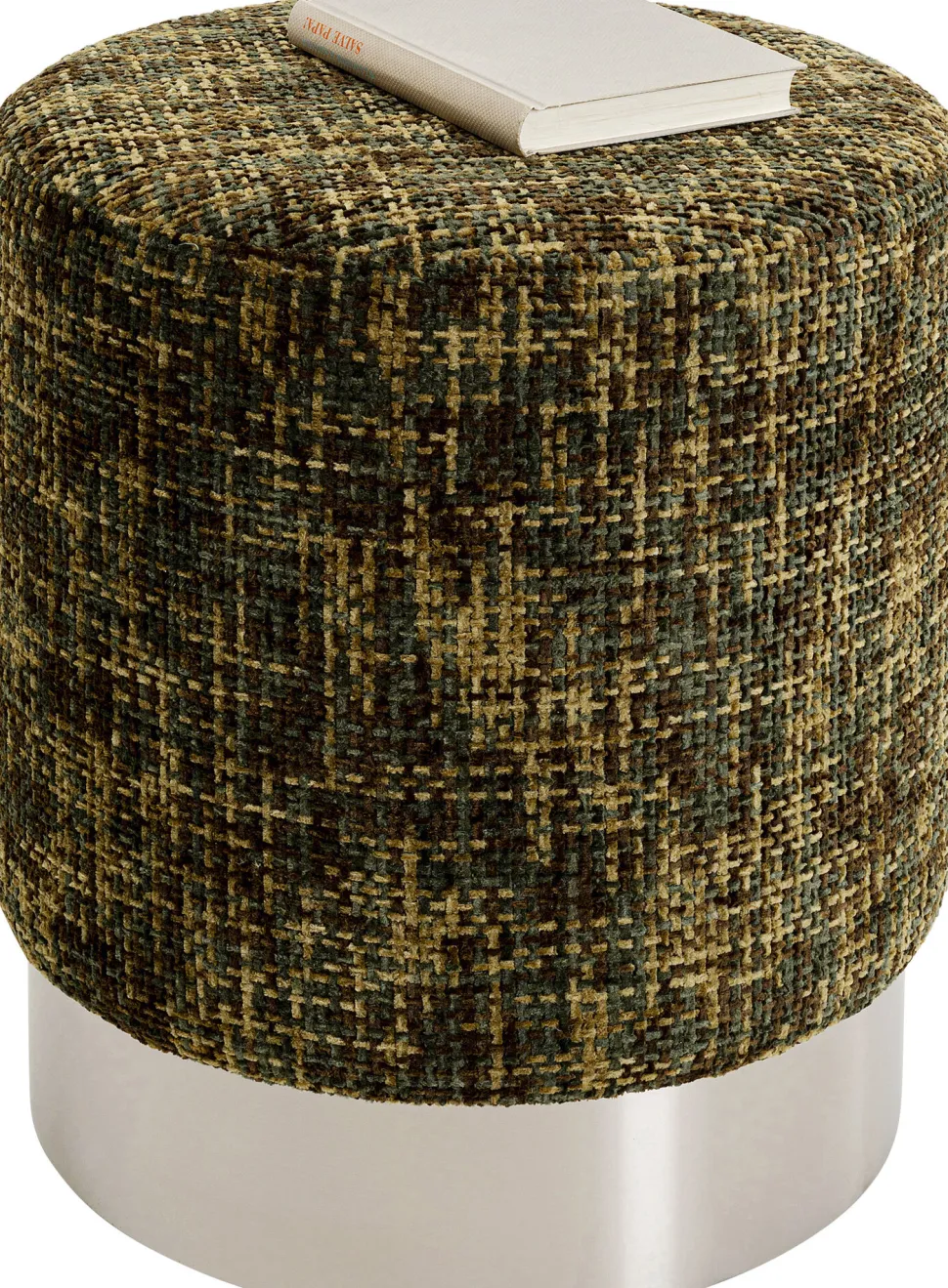 - Runder Polsterhocker in Grün mit silbernem Sockel, 47 x 39 x 39 Zentimeter (H/B/T)