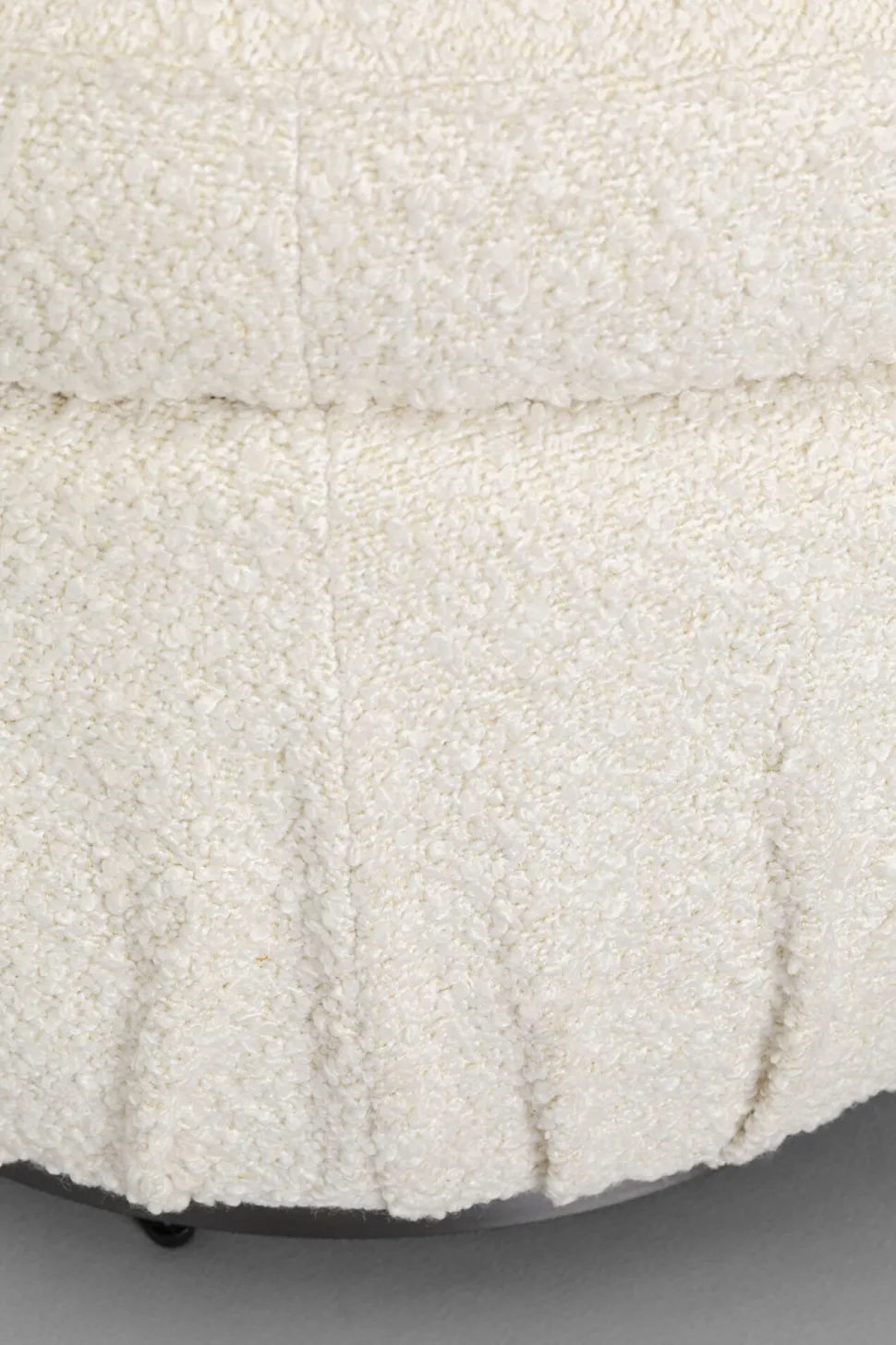 - Die runde Form und der weiche Bouclé-Bezug in sanftem Creme-Weiß schaffen einen modernen, einladenden Look