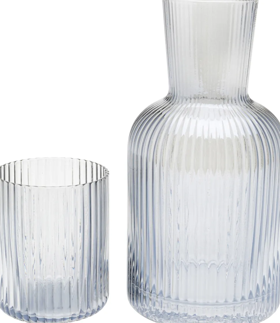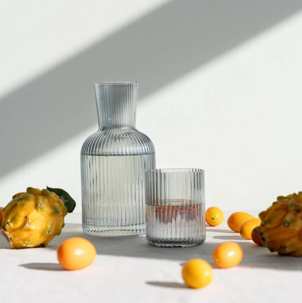 - 2er-Set aus Glaskaraffe und Trinkglas in geriffelter Optik, 18.5 x 9 x 9 Zentimeter (H/B/T)