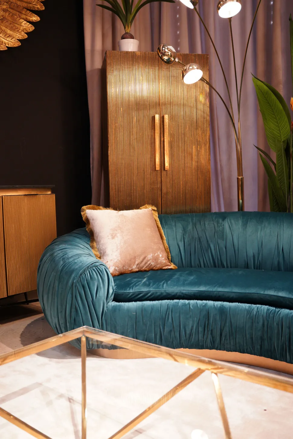 - Samtkissen in Beige und Gelb, 45x45x12 cm (H/B/T)