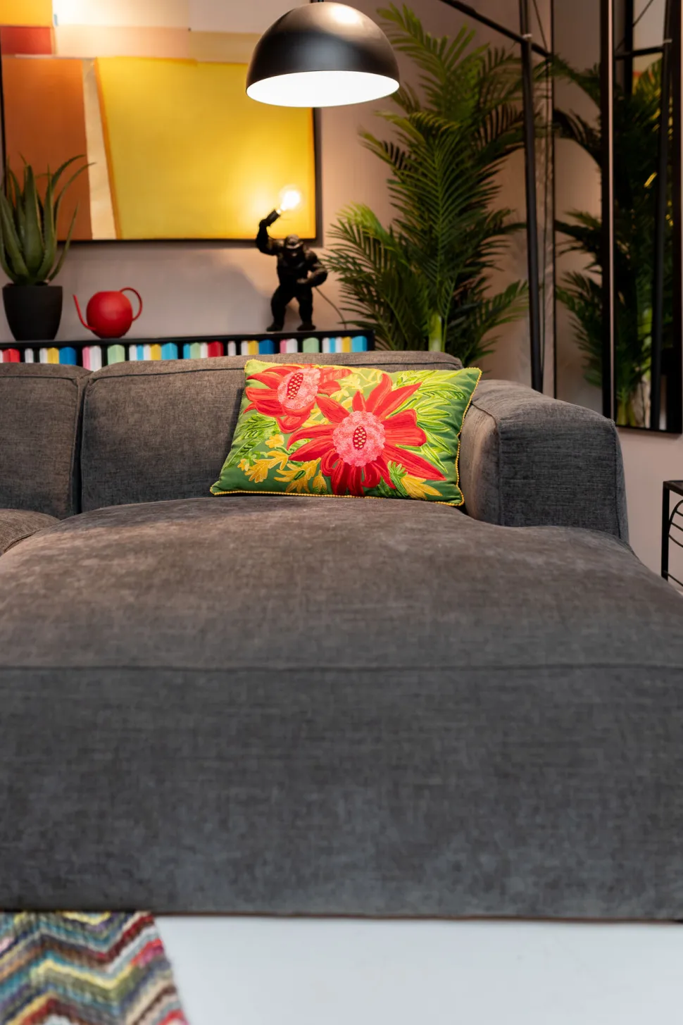 - Auf Samt-, Bouclé- oder klassischen Stoffsofas setzt das Kissen stilvolle Akzente mit botanischem Charme