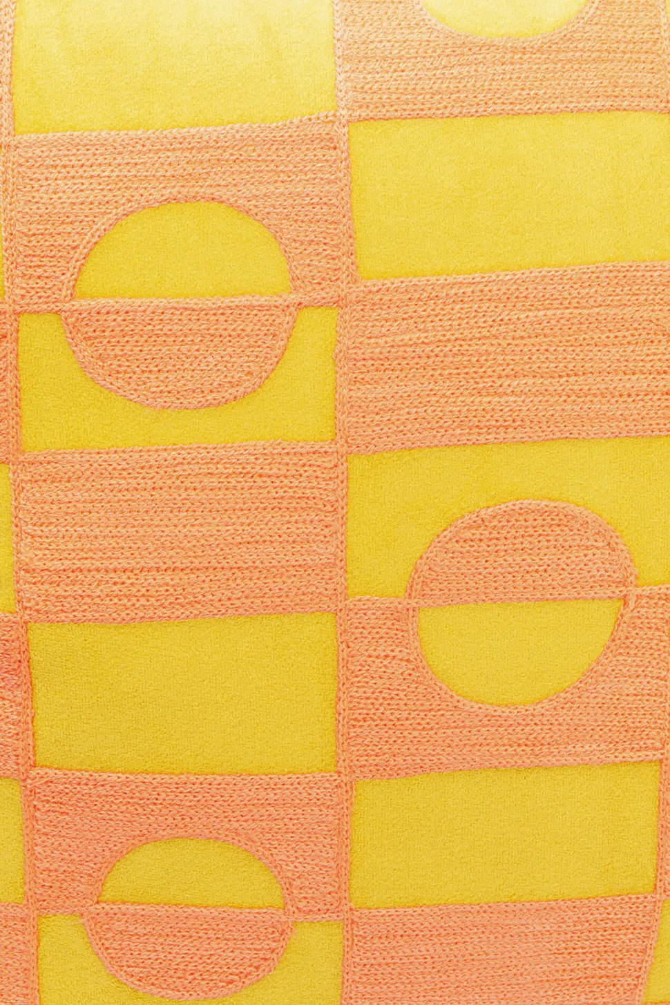 - Orangenes Deko-Kissen mit geometrischem Motiv, 45 x 45 x 12 Zentimeter (H/B/T)