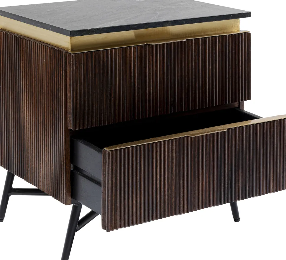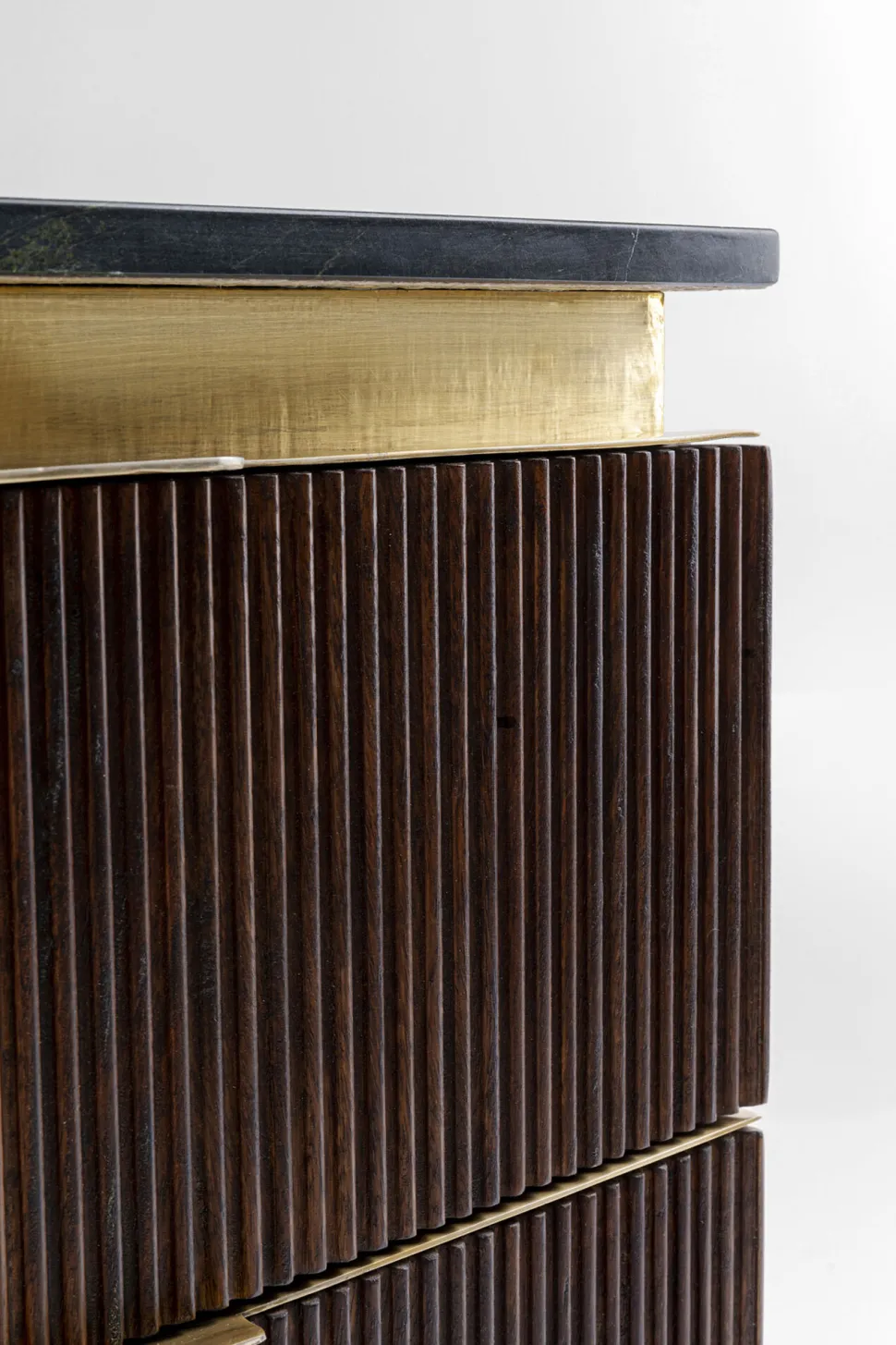 - Kleine Holzkommode in Braun mit Messingdetails Platte aus Mineral-Marmor, 58 x 50.5 x 40.5 cm (H/B/T)
