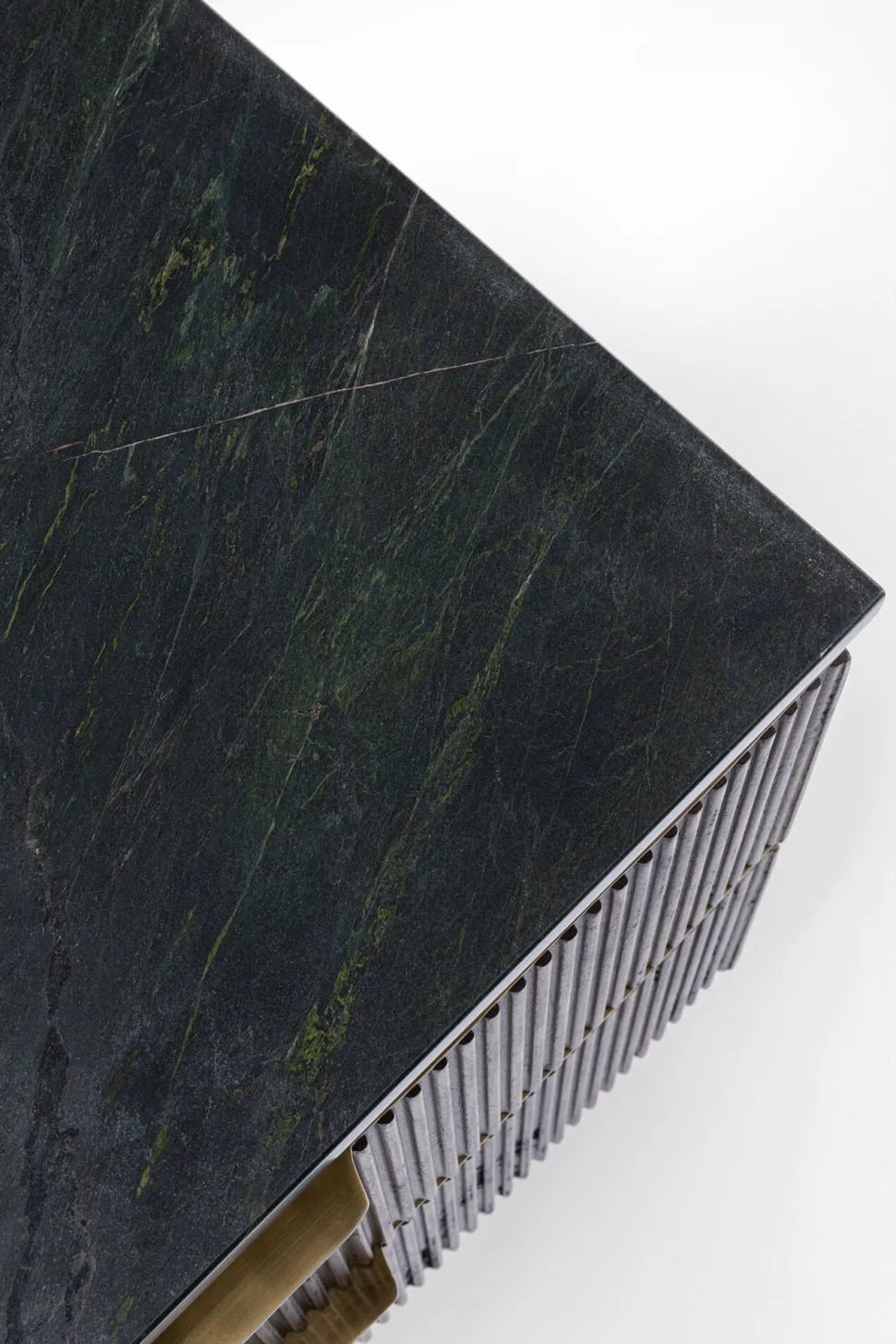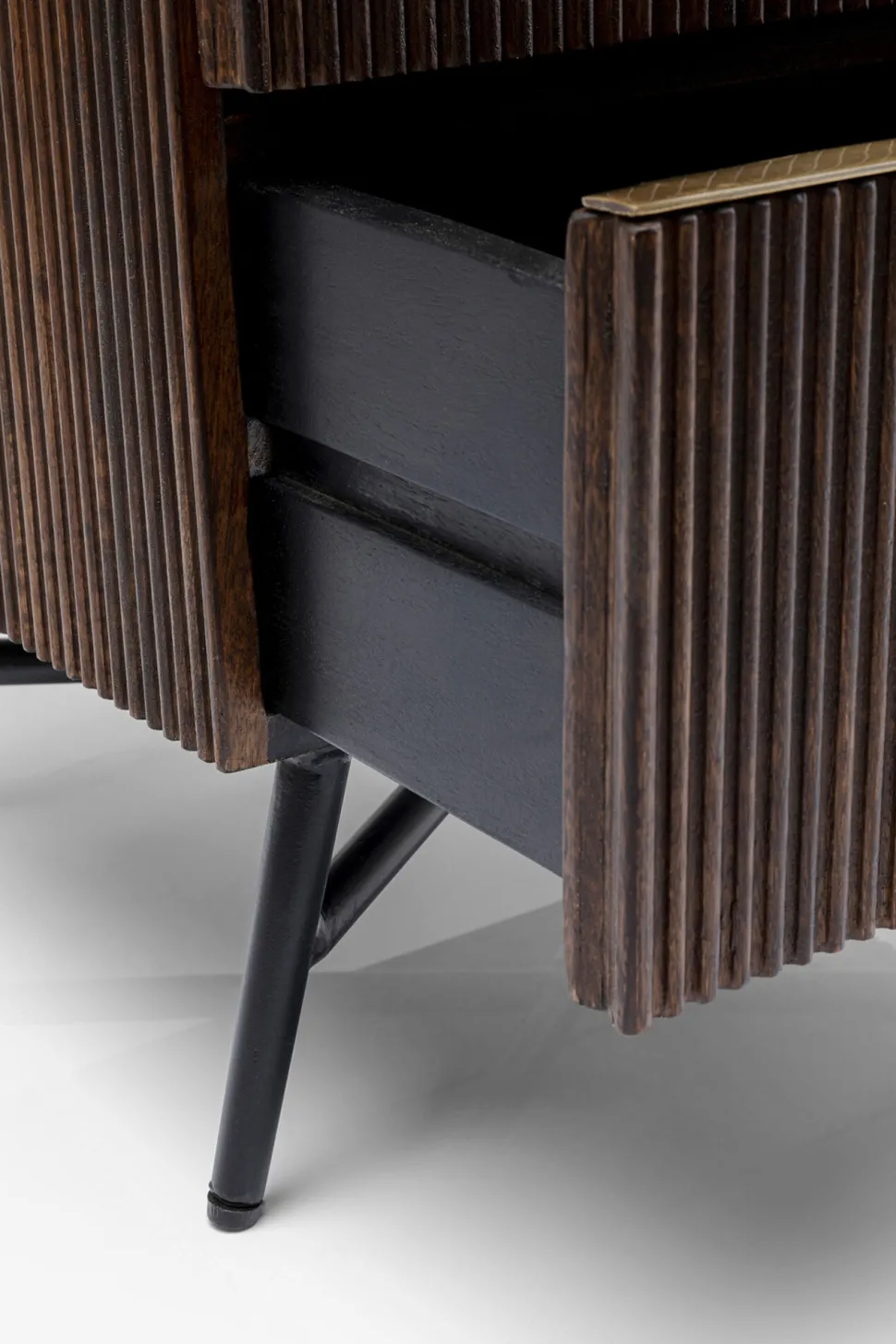 - Originelles Design mit Fronten in Rillen-Optik, goldfarbenem Sockel unter der Deckplatte