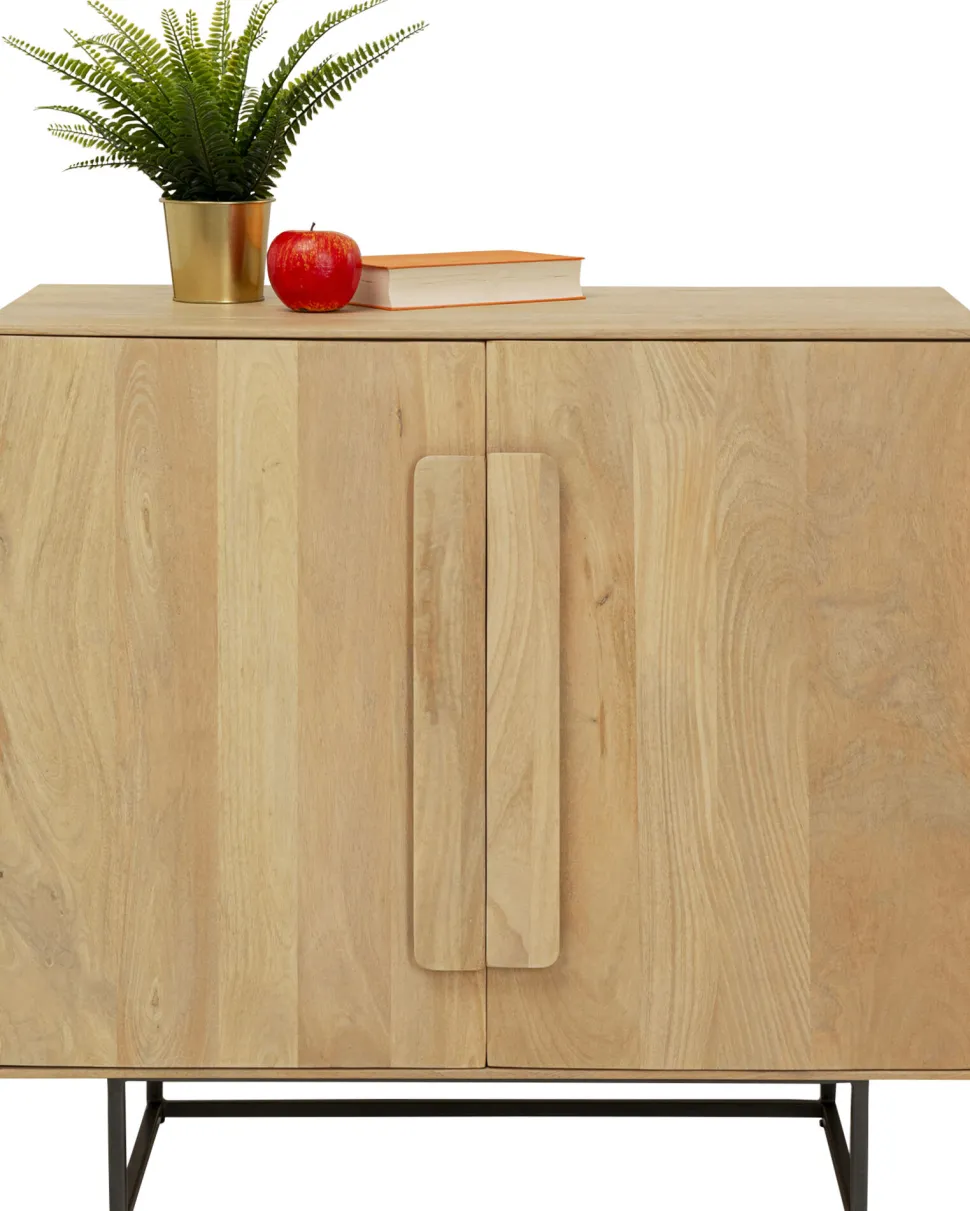 - Korpus und Fronten aus hellem, lackiertem Mango Massivholz, das durch Stabilität, seine charakteristische Maserung überzeugt