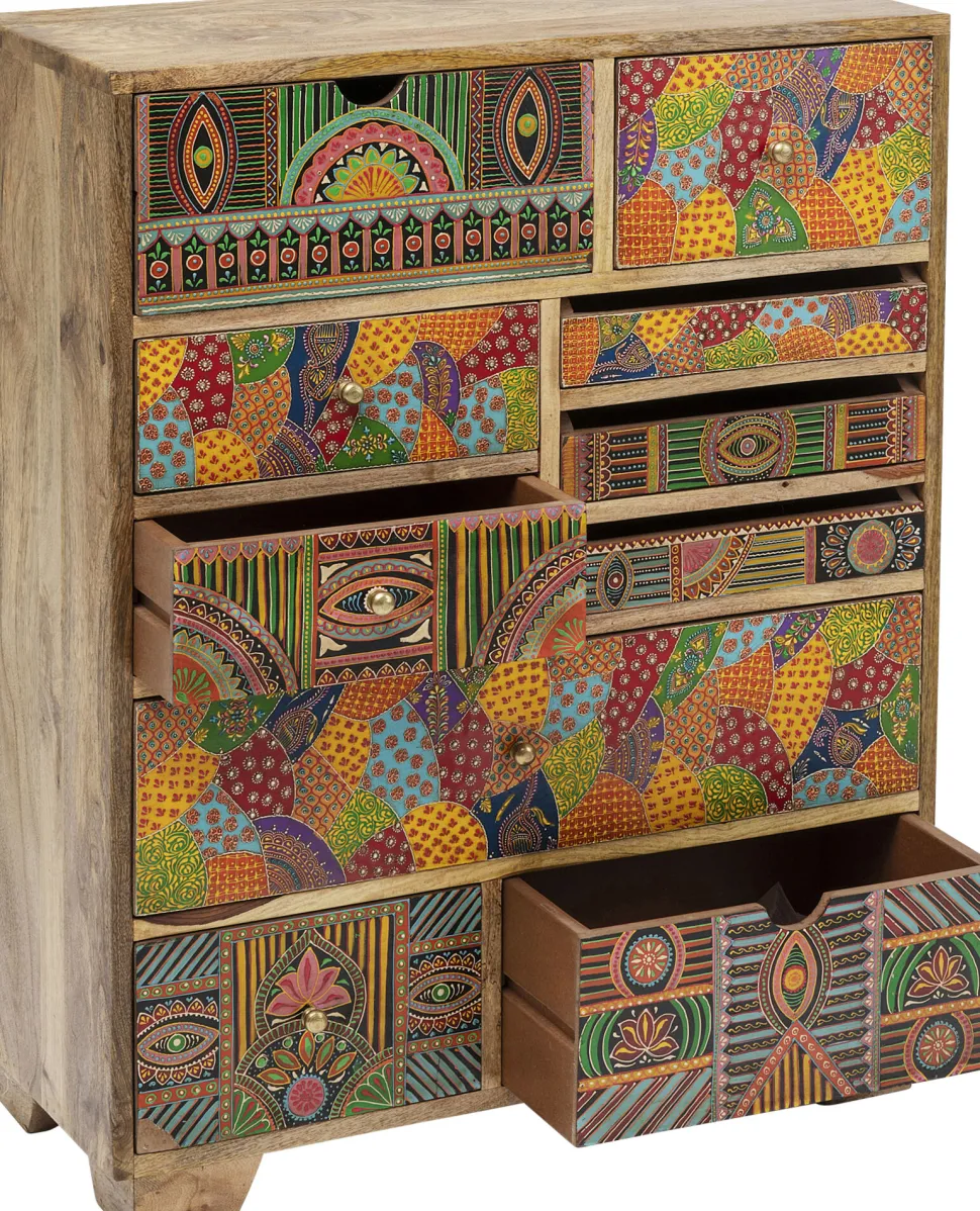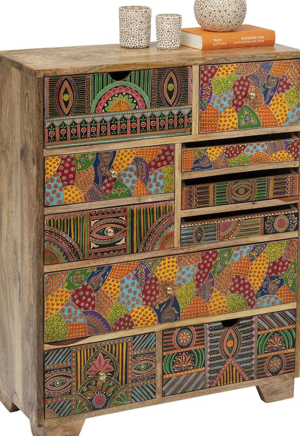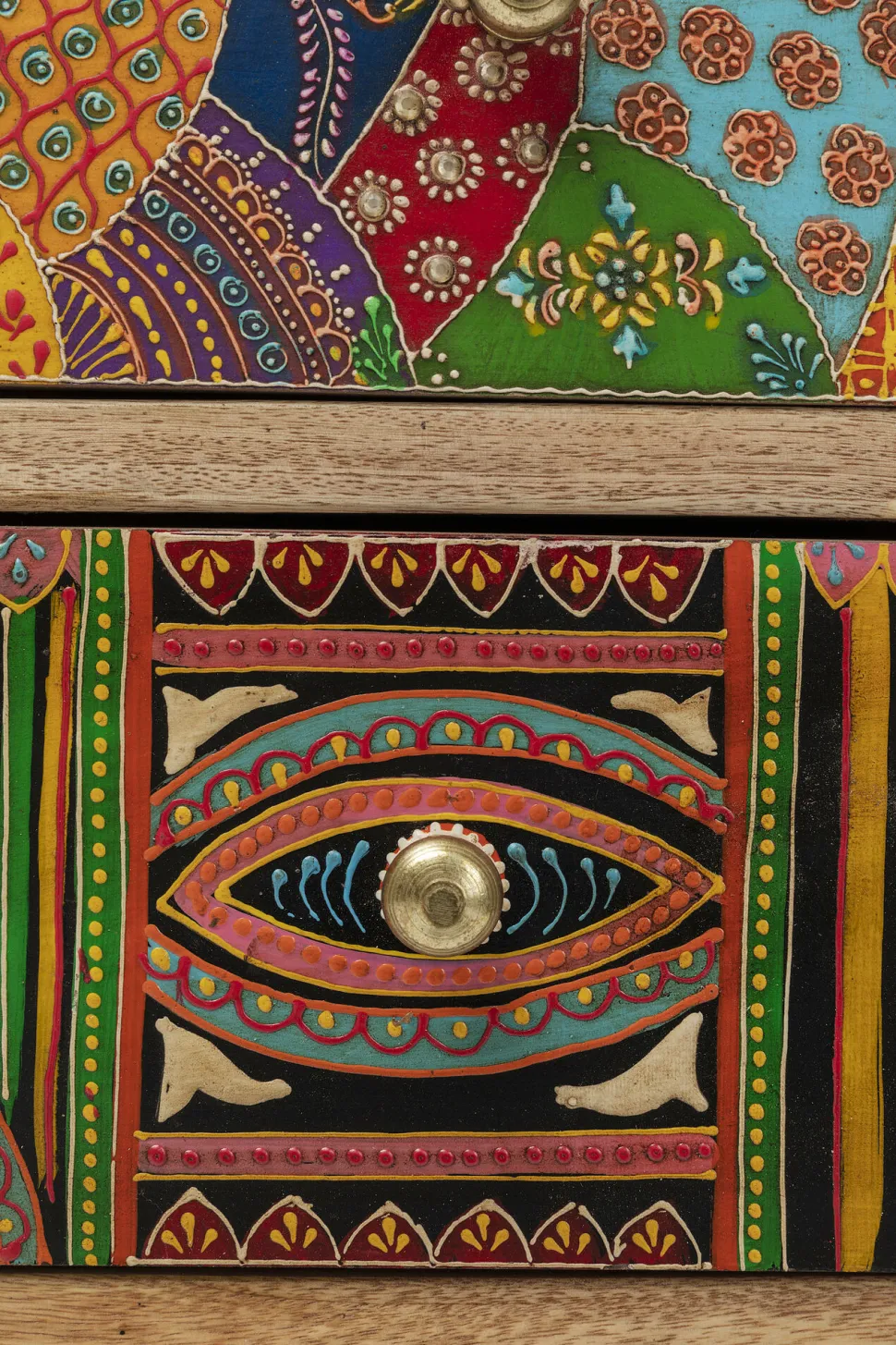 - Handgearbeitete Holzkommode mit sehr viel Stauraum und vor allem einer bunten Front im Ethno-Stil