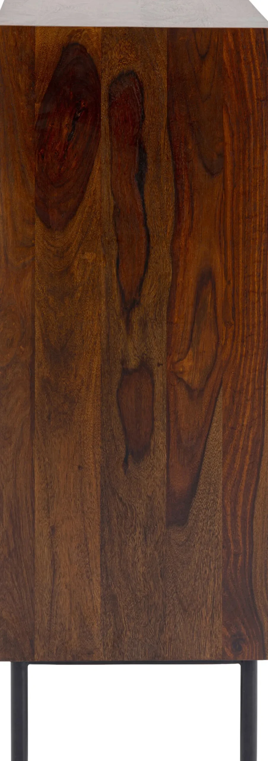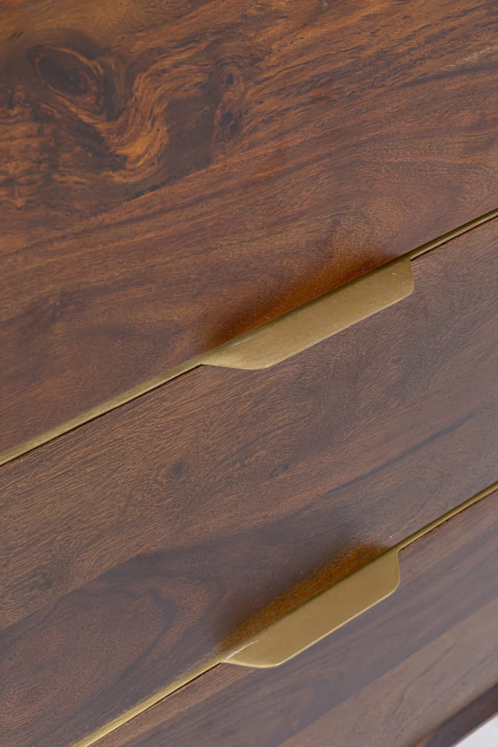 - Schnörkellos und absolut gradlinig in der Tradition des skandinavischen Möbeldesigns mit schmalen Griffleisten. Highlights setzen die Messing-Akzente