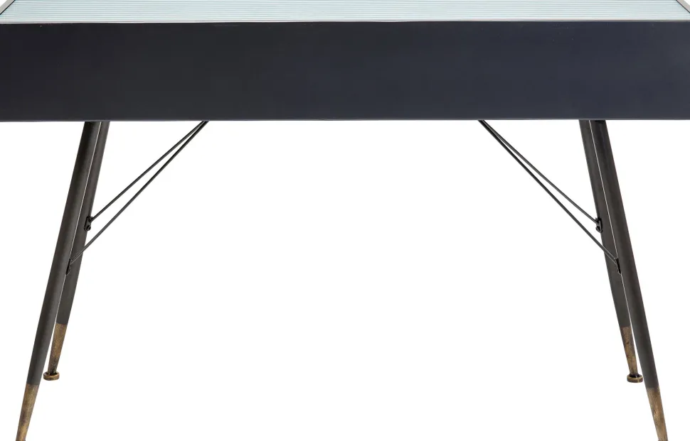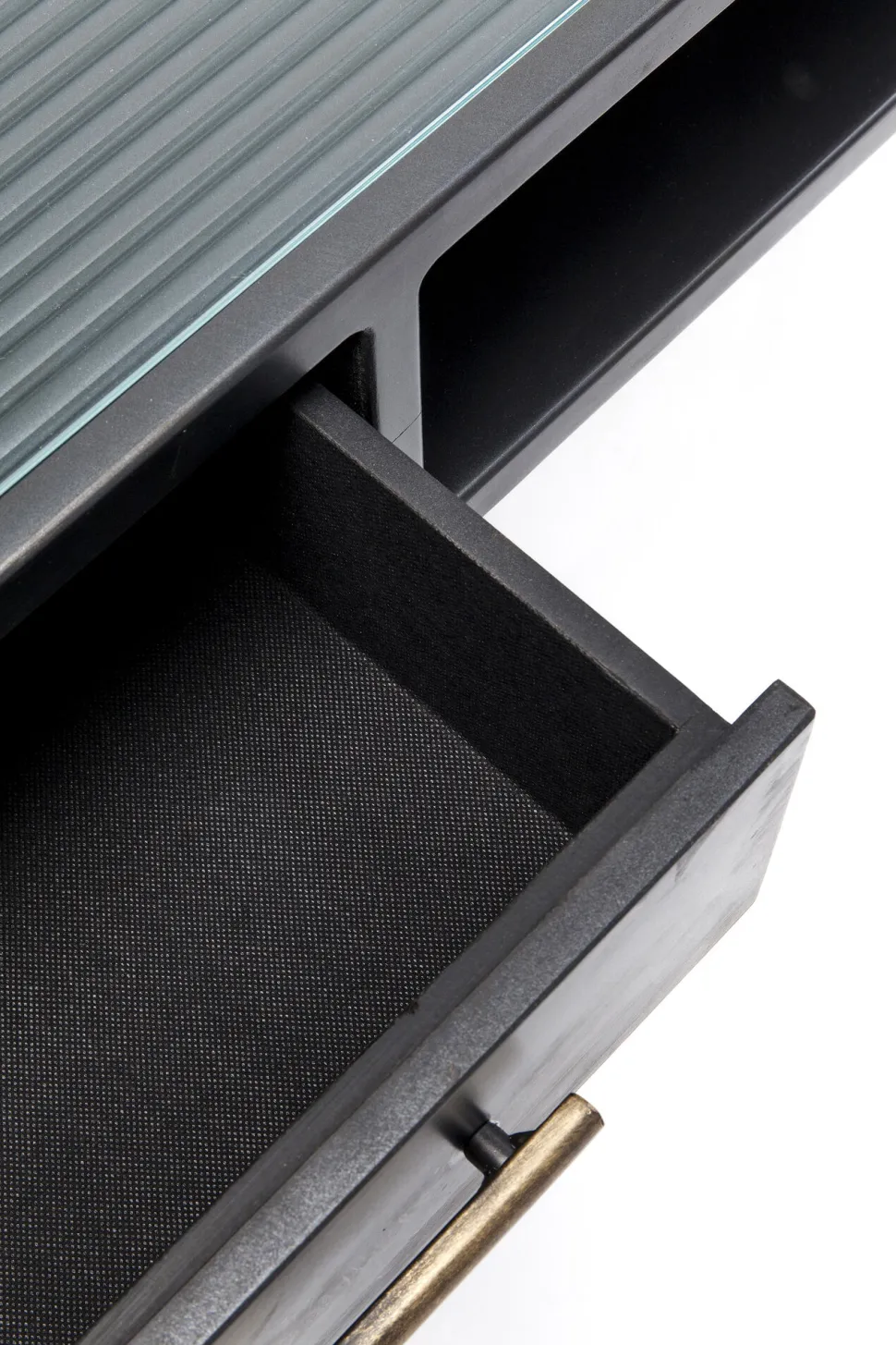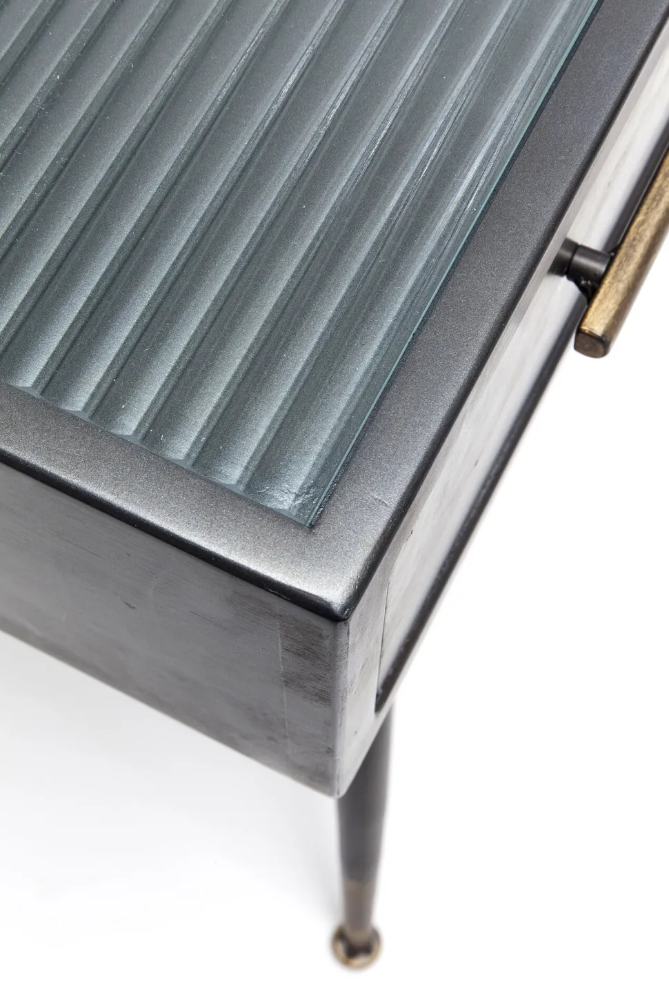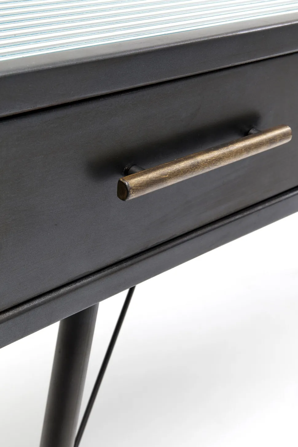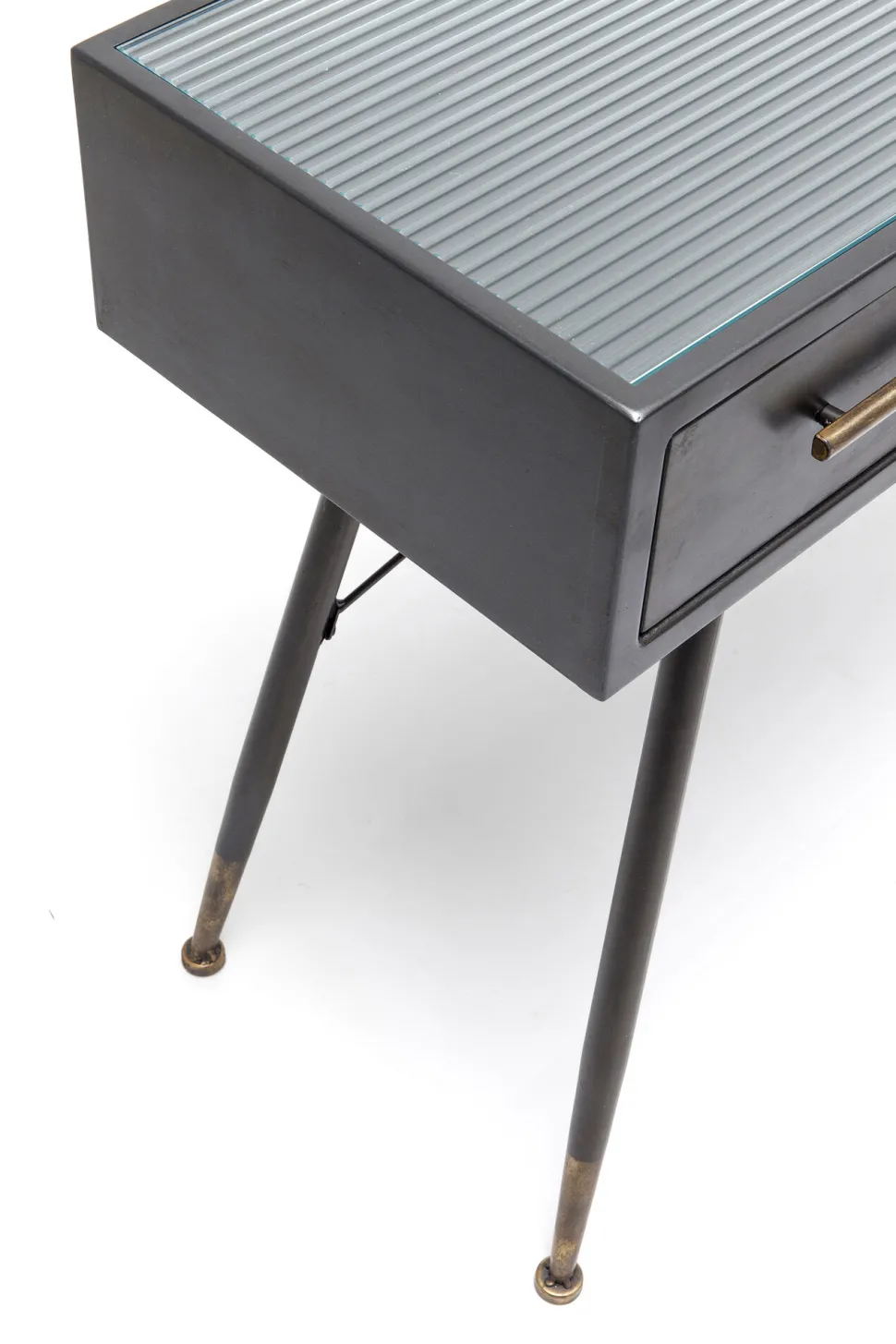 - Feine Details: die filigranen Verstrebungen sowie die messingfarbenen Griffe und Füße