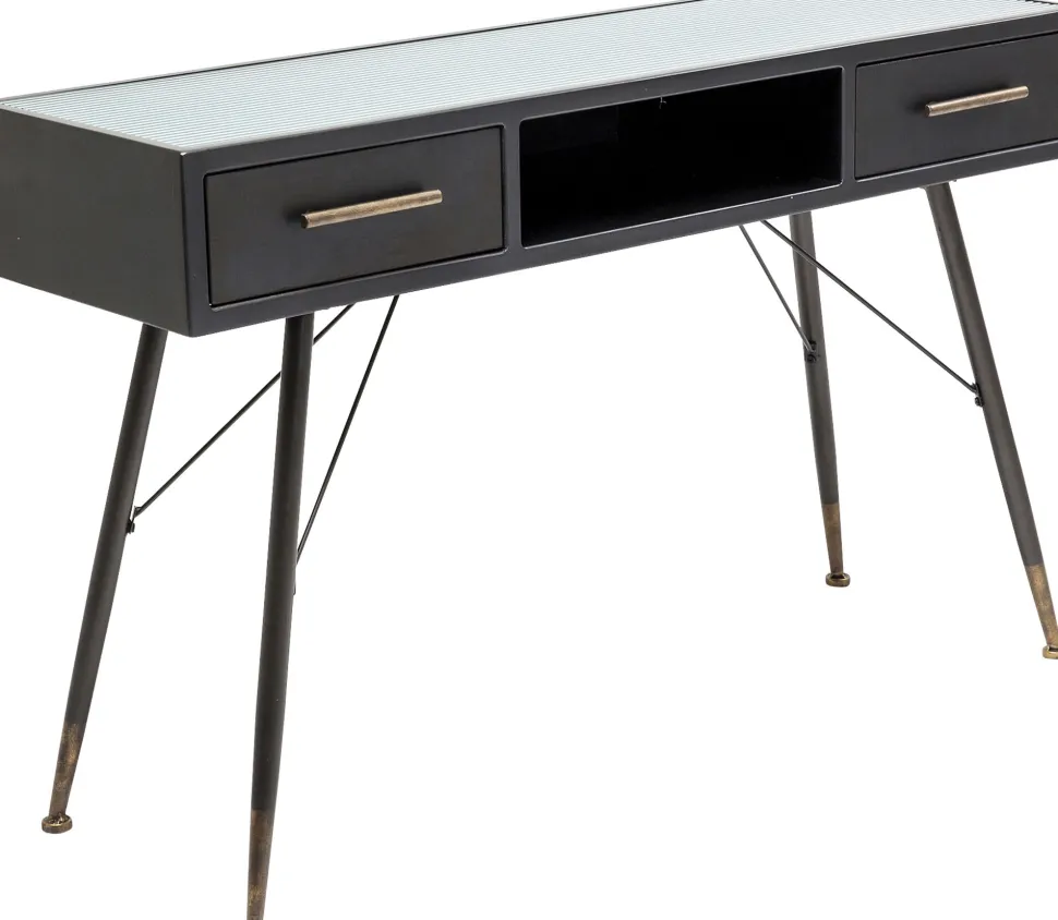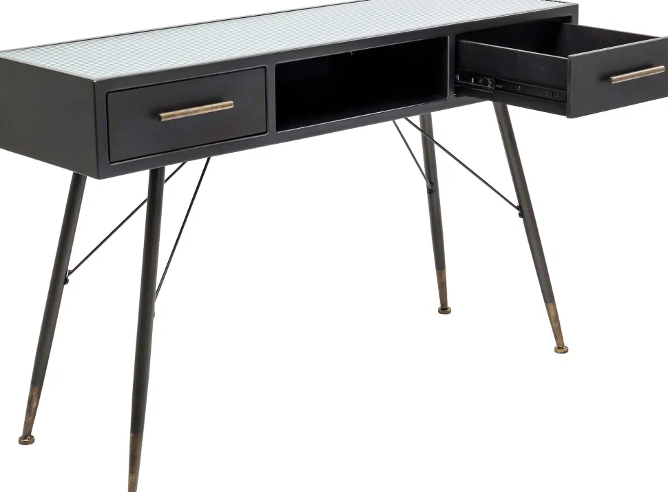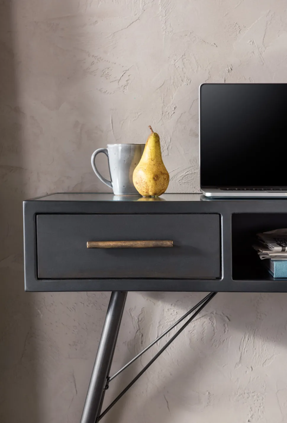 - Leichtfüßige, schwarze Konsole im Understatement-Look, die gerne auch als Laptop-Tisch dient