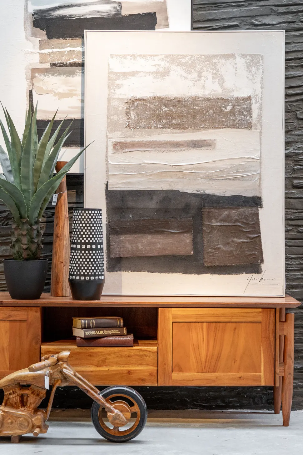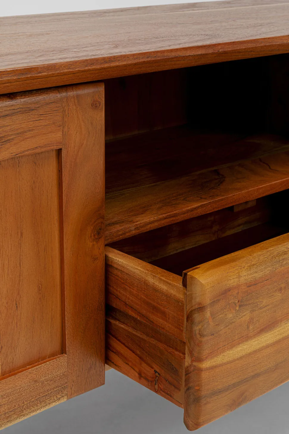 - Handgearbeitetes Lowboard aus Massivholz mit 4 Fächern in Braun, 55 x 175 x 40 Zentimeter (H/B/T)