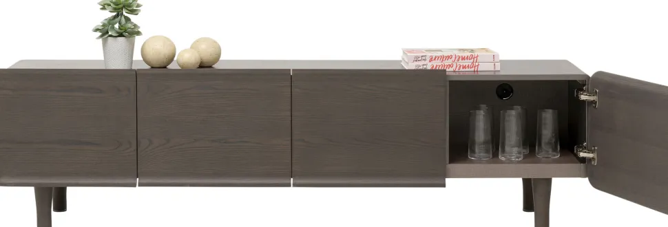 - Lackiertes Esche-Holz in einem dunklen Braun verleiht diesem Möbel eine warme Ausstrahlung