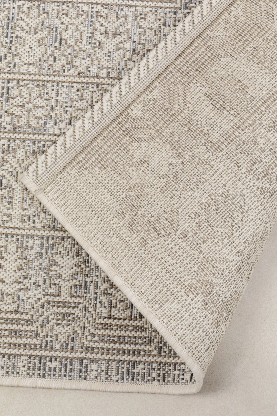 - Pflegeleichter Web-Teppich mit dezentem Muster für drinnen und draußen