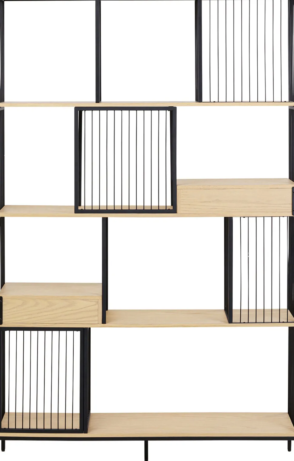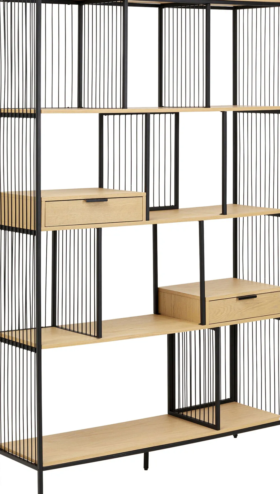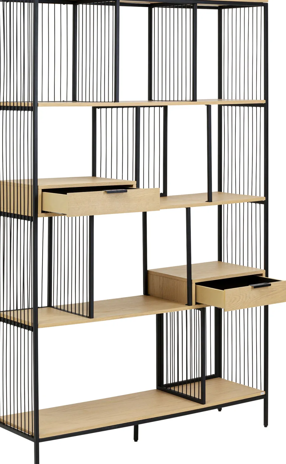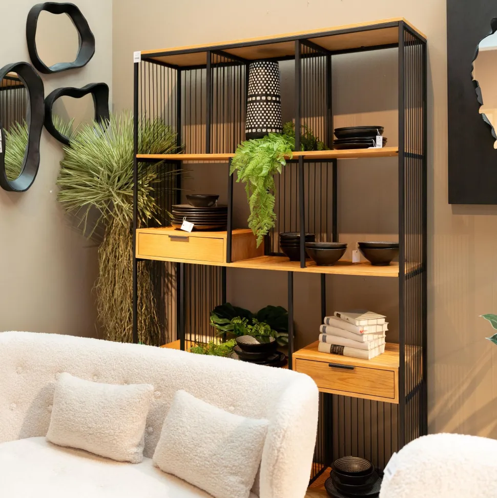 - Die Fusion von Metall und Eichenholz macht aus diesem großen Standregal ein Designer-Möbel für jeden Raum