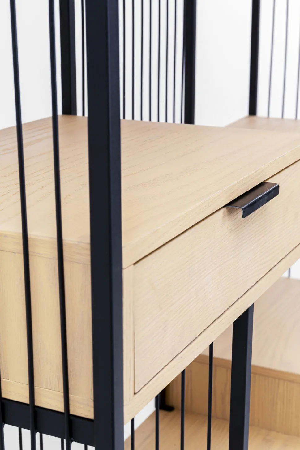 - In das Regal integriert sind zwei Schubladen, in denen sich Kleinkram und Zubehör stilvoll verstauen lassen