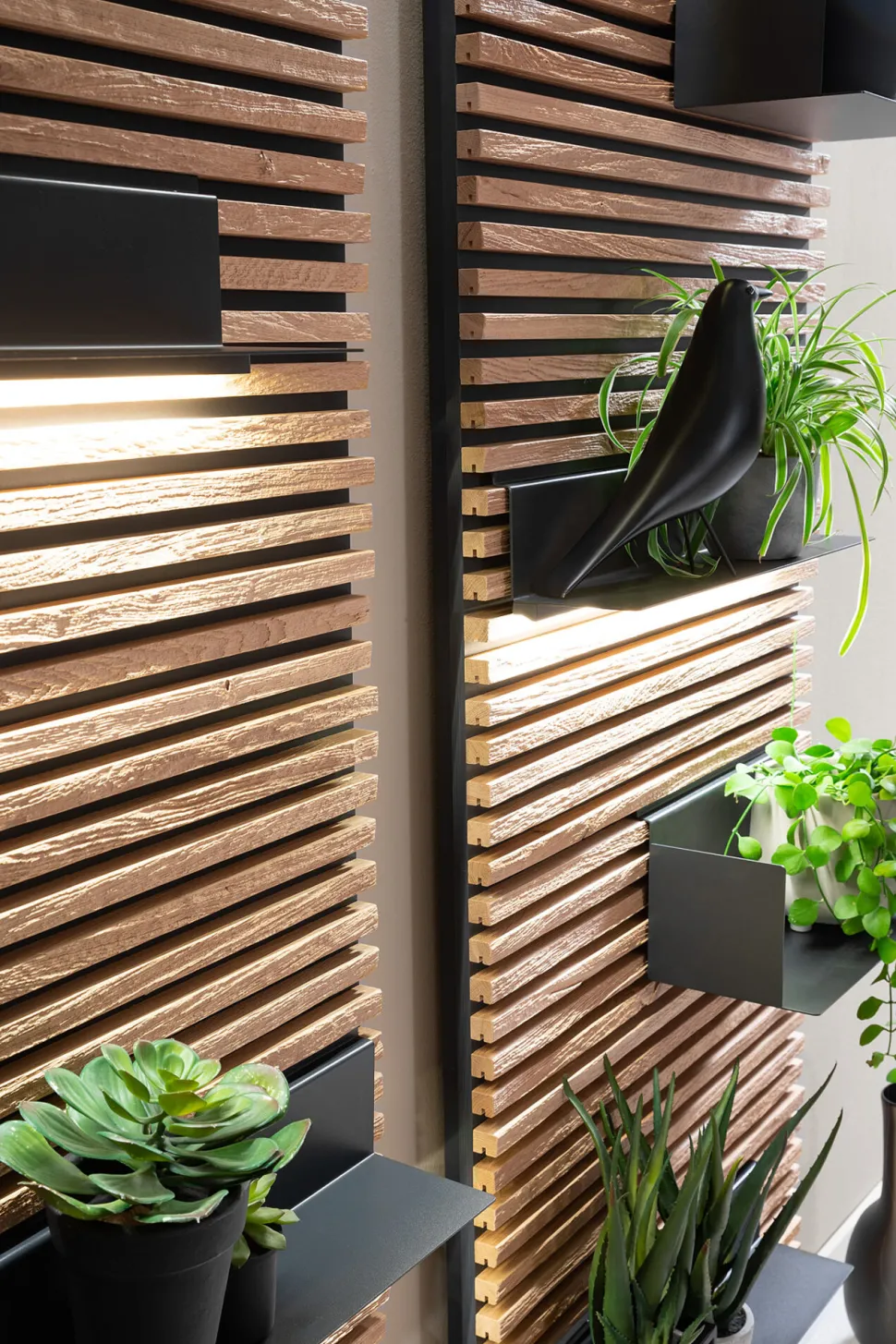 - Lamellenpaneel mit 4 variabel einsetzbaren Regalböden in Metall anthrazti