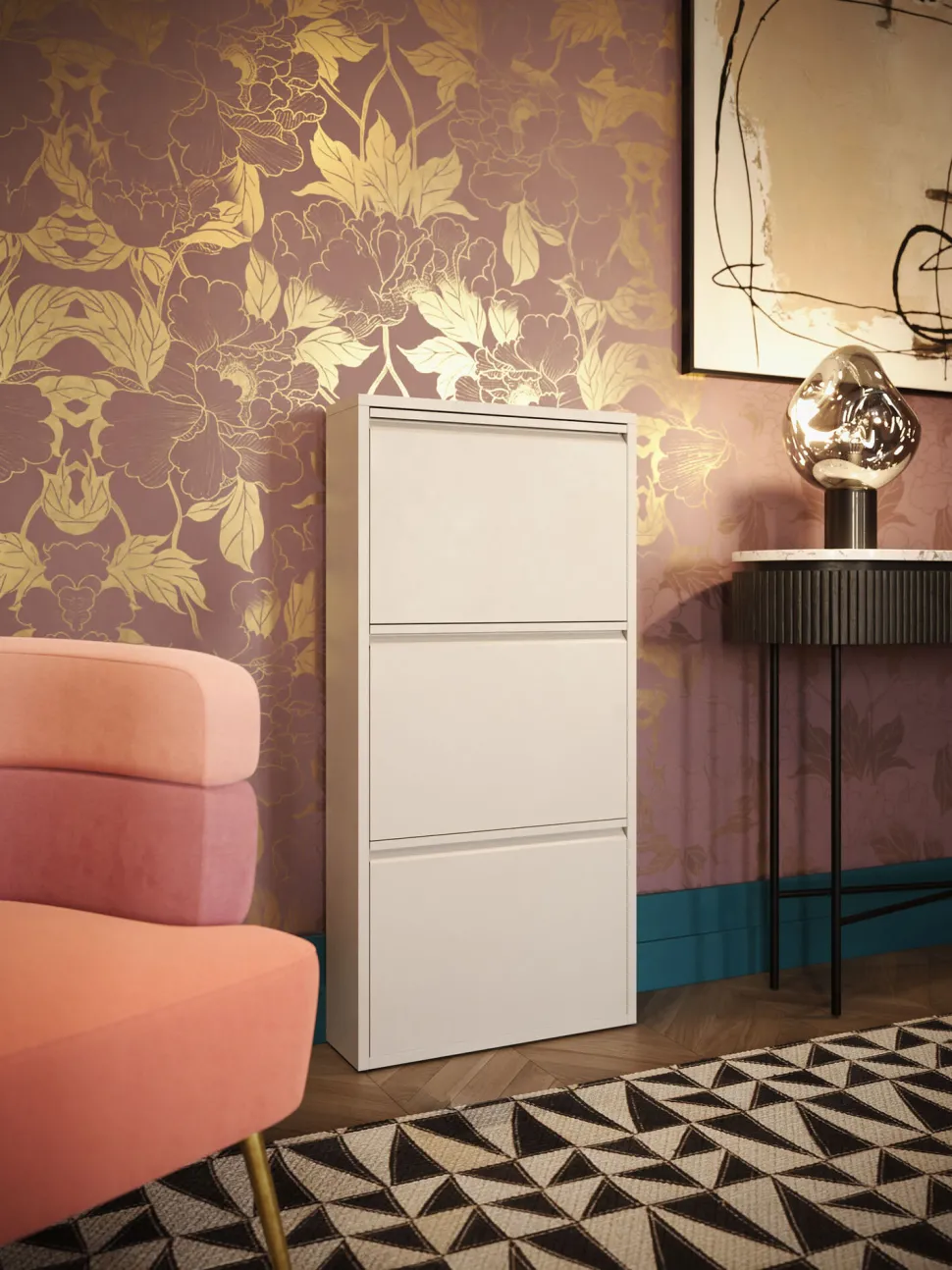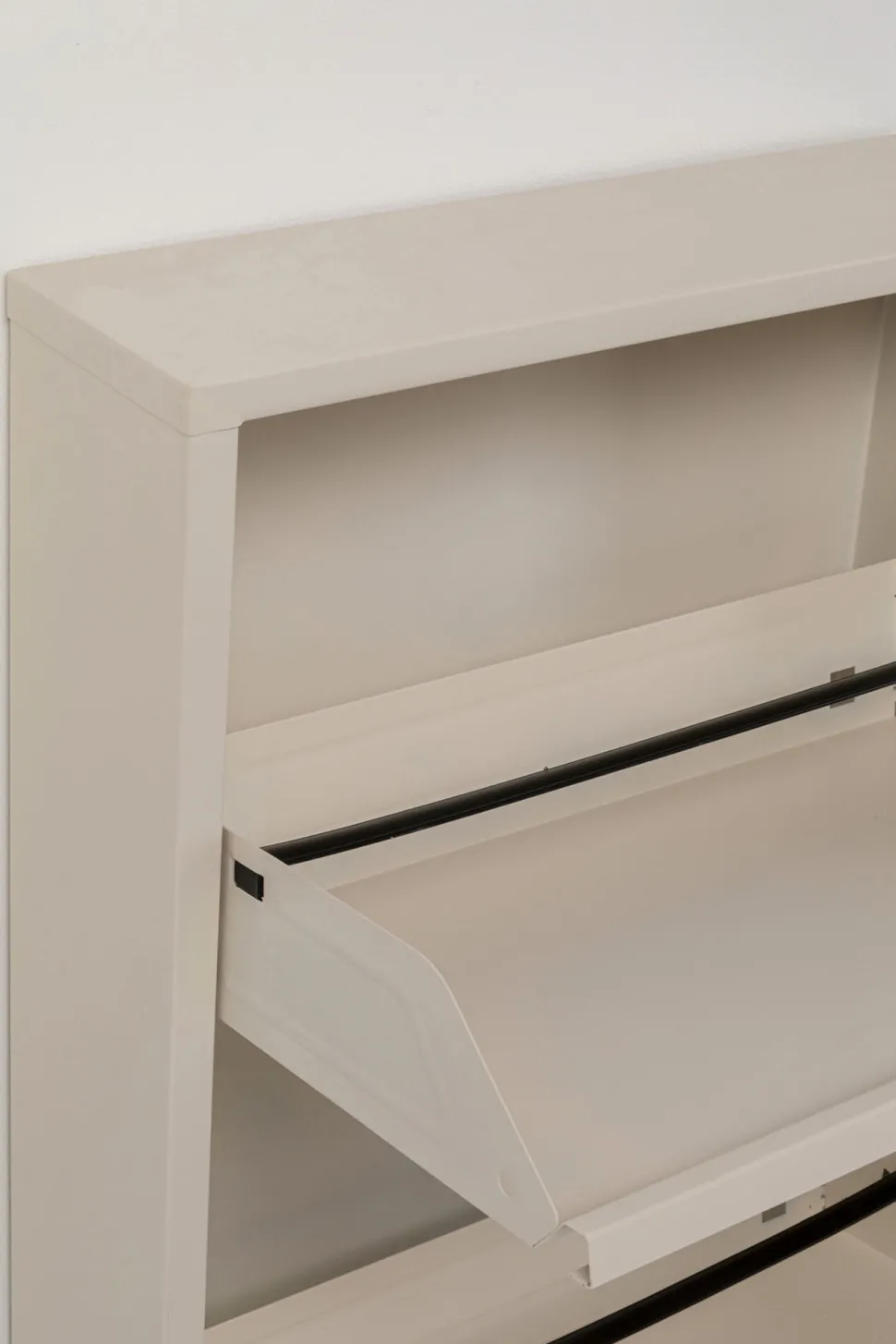 - Praktischer, creme farbener Schuhschrank mit drei Kippfächern