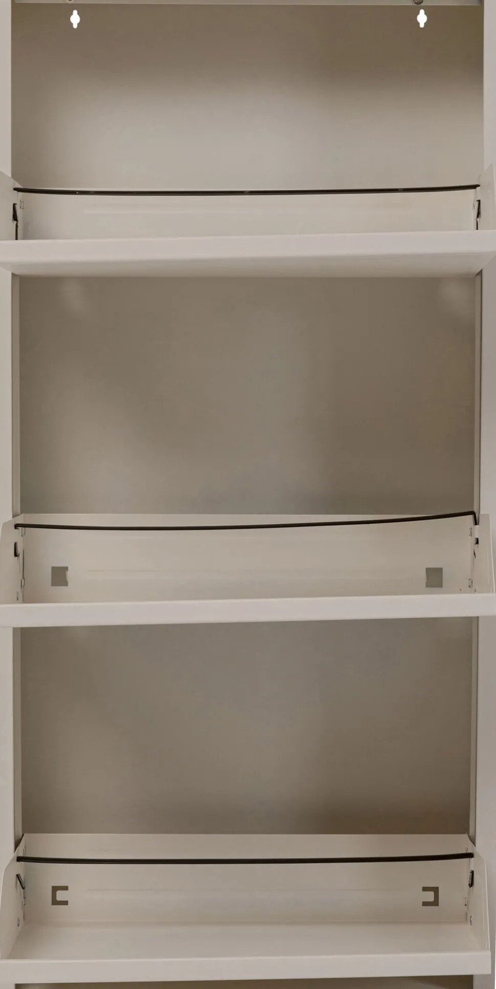 - Dank glatter Fronten und geringer Tiefe macht sich der Schuhkipper nahezu unsichtbar