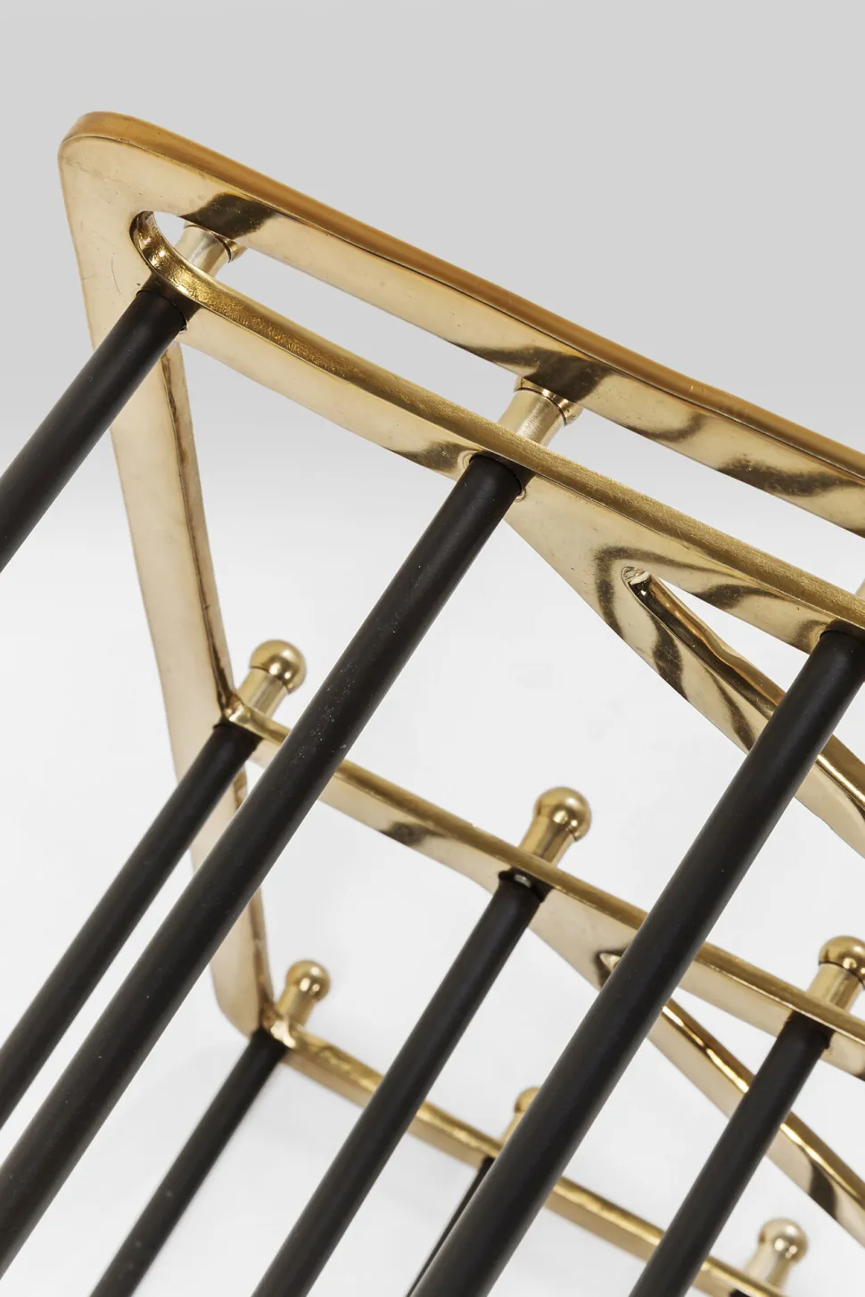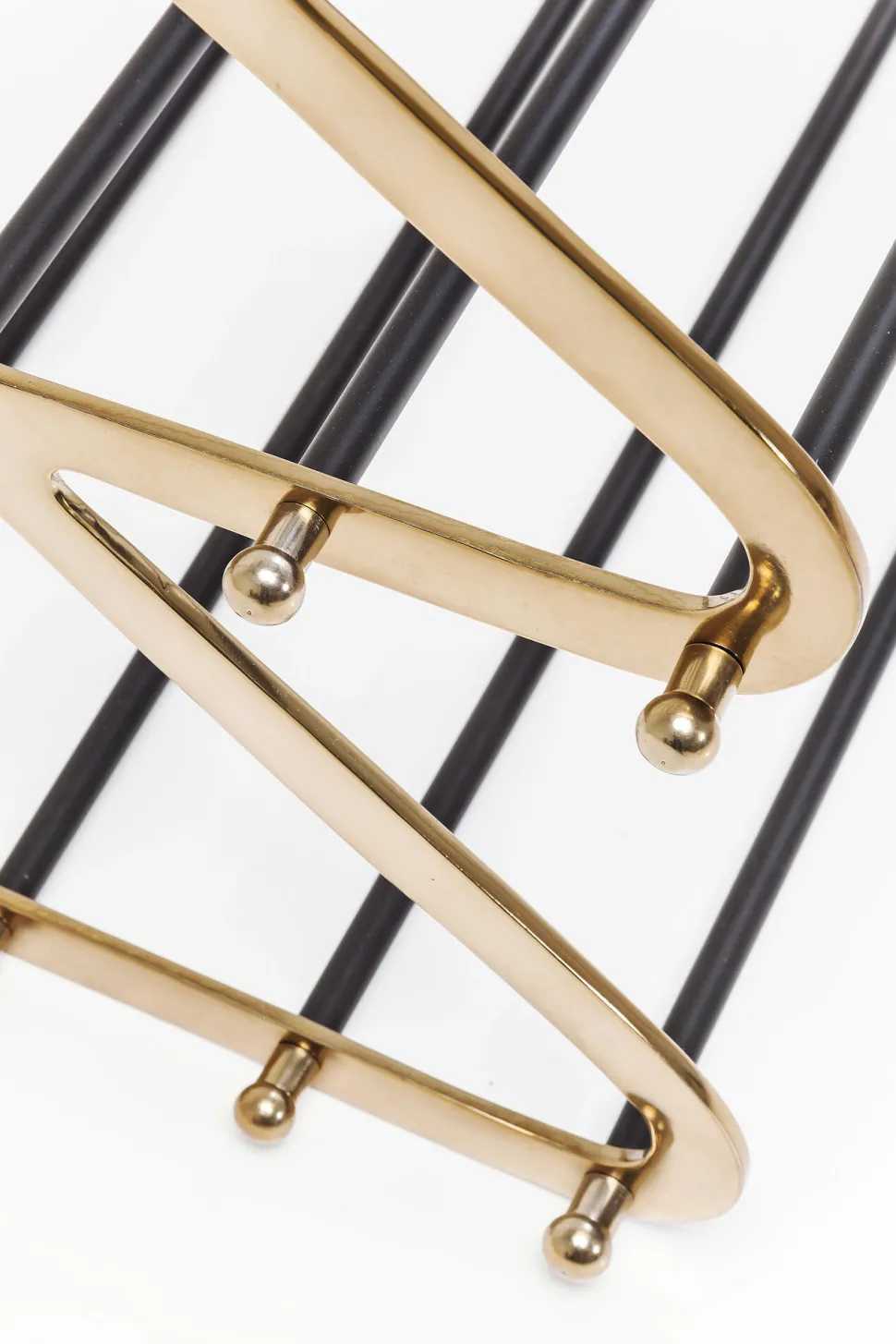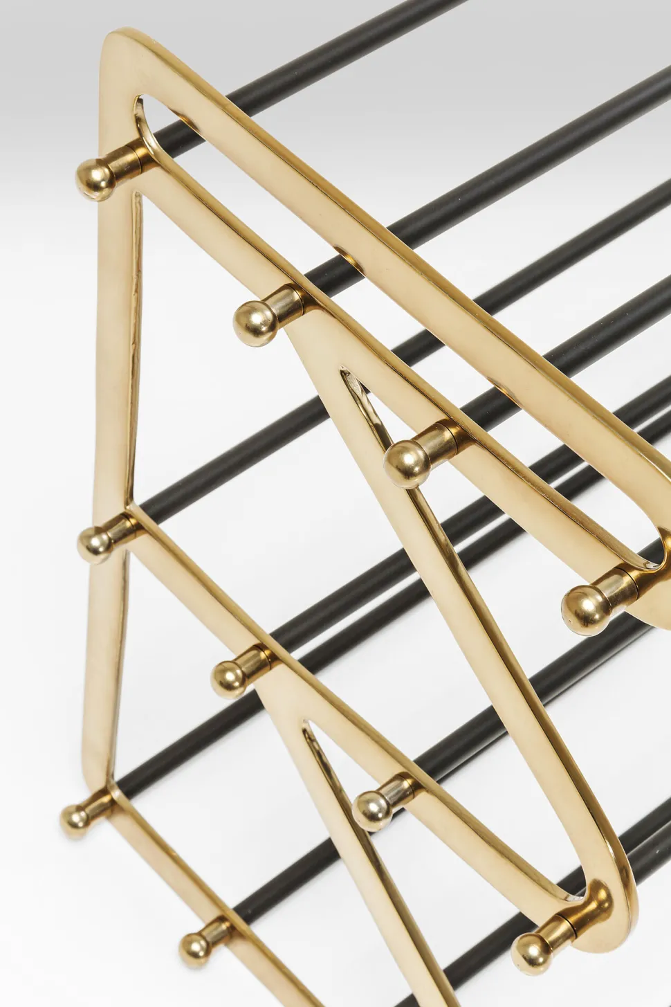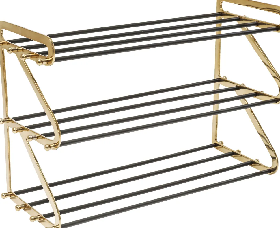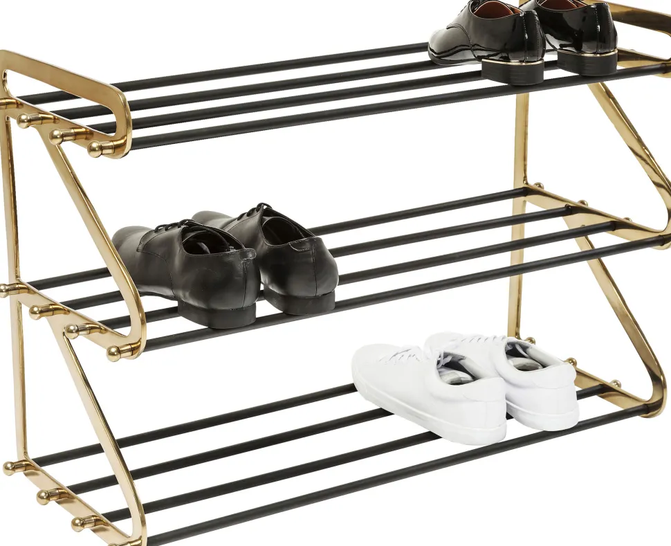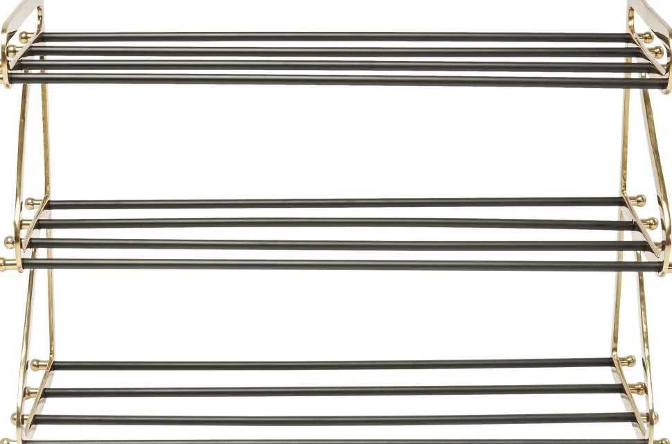 - Schuhregal aus Stahl mit Glam-Faktor, lackiert in Schwarz und Gold und mit hübschen Zierelementen