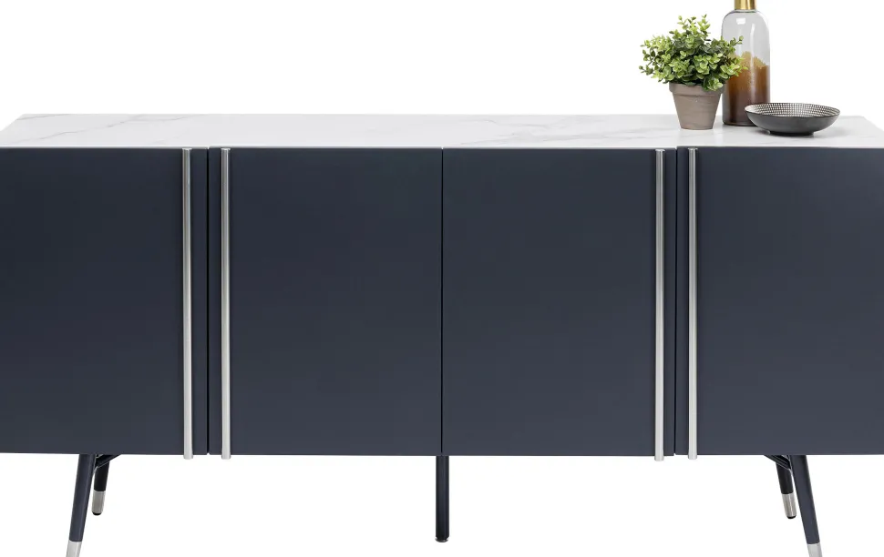 - Modernes Sideboard in dunklem Grau mit silberfarbenen Akzenten und Marmoroptik