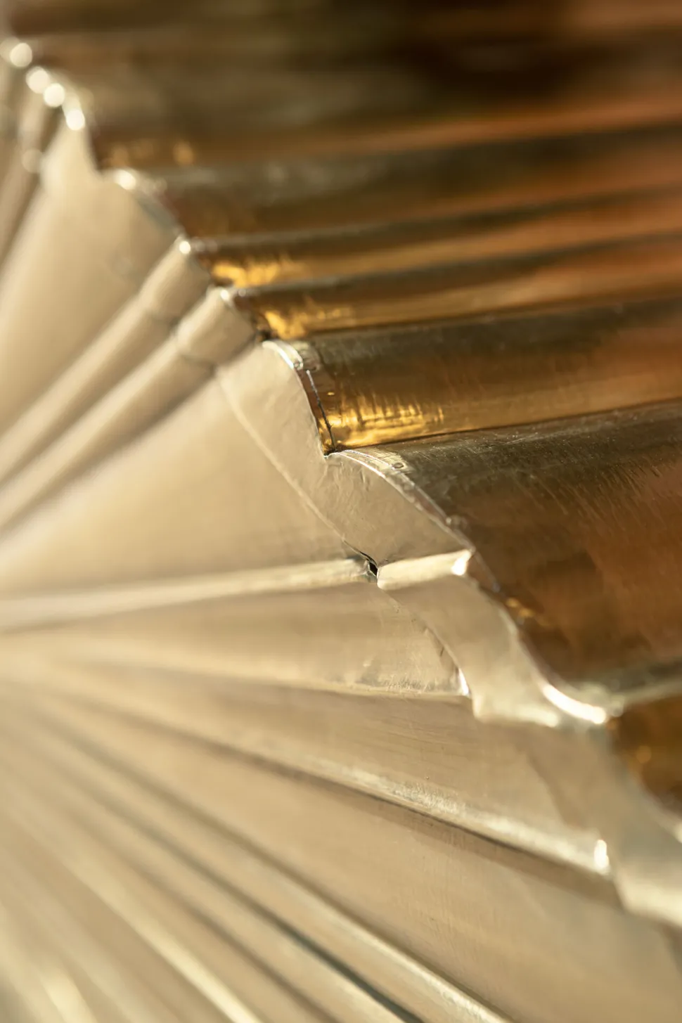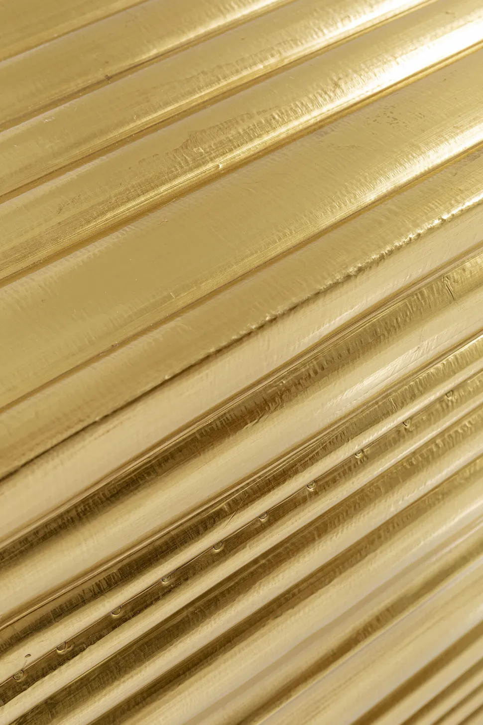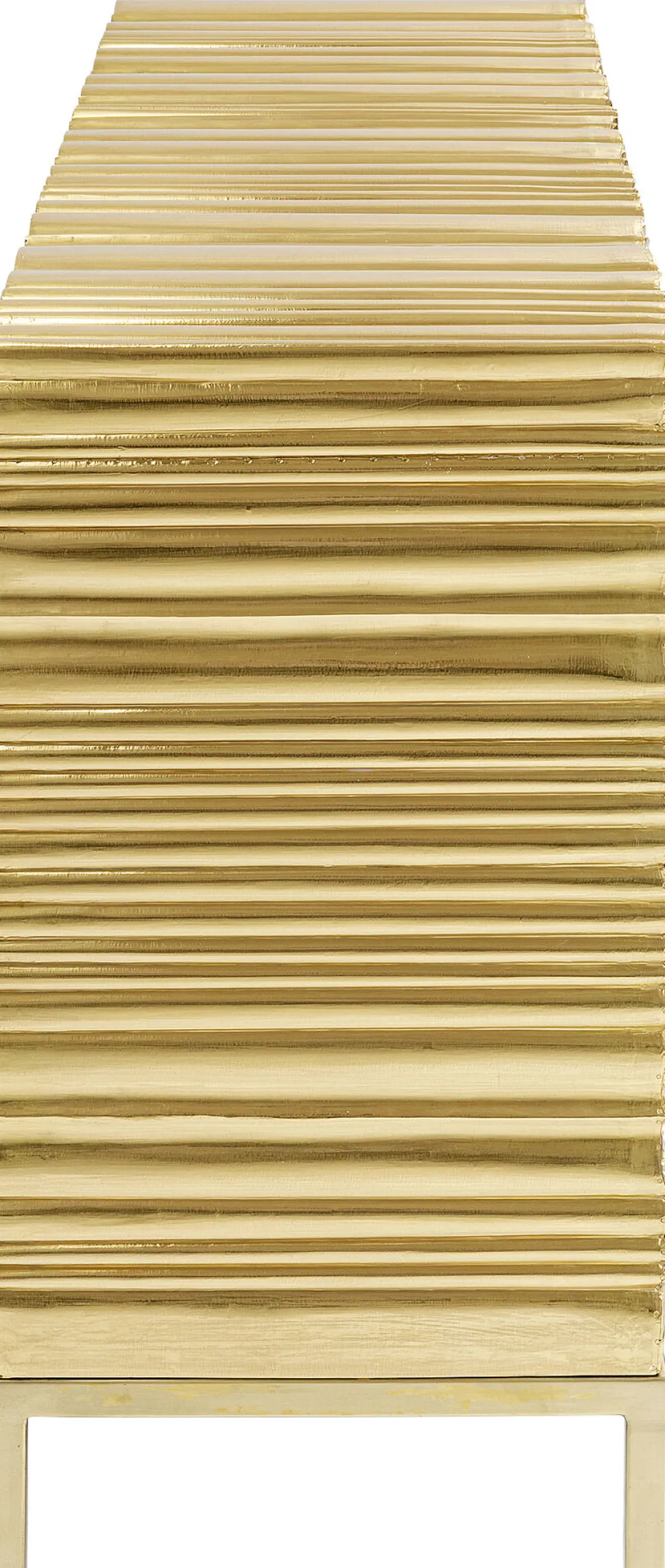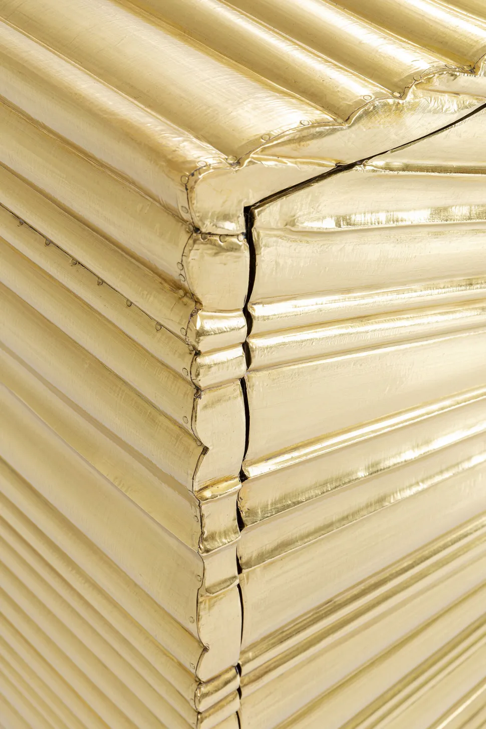 - Glanzvolles, goldenes Sideboard mit Reliefoberflächen und grünen Griffen