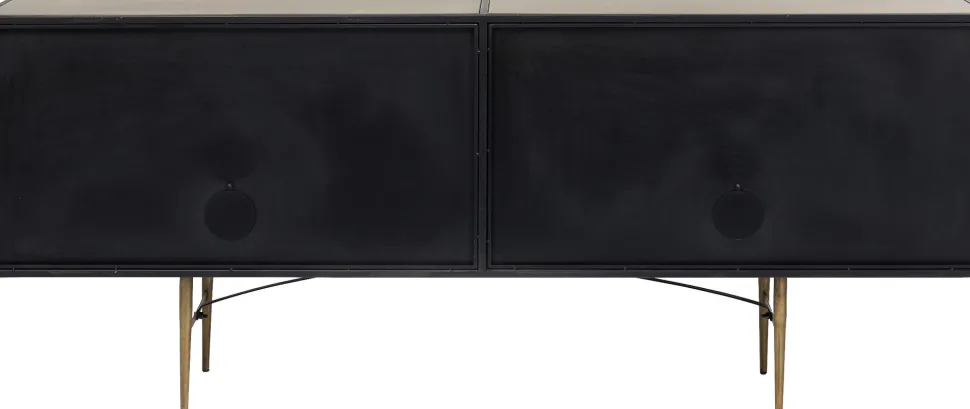 - Meisterstück mit Show-Talent: Großes Sideboard mit Stahlkorpus, Messing Veredelung und in echter Terrazzo-Technik gefertigten Fronten