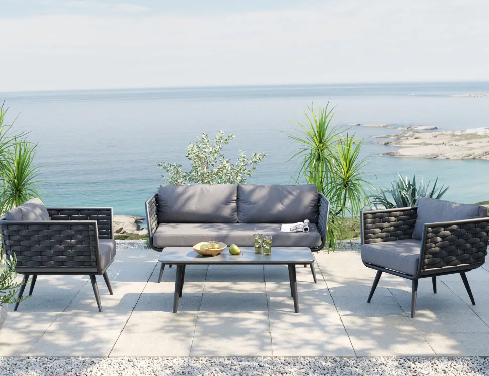 - Das moderne Geflecht an den Lehnen in zeitlosem Anthrazit verleihen der Designer-Lounge ein luxuriöses Flair und schaffen maximalen Sitzkomfort