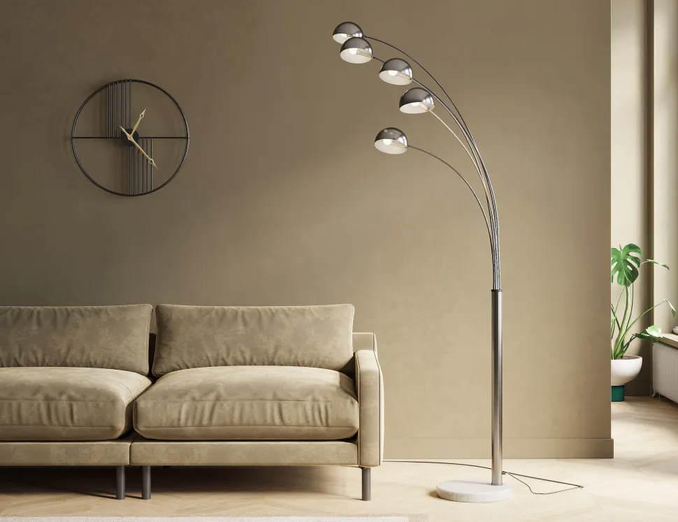 - Stehleuchte mit Stil: Fünf schwenkbare Arme sorgen für eine perfekte Ausleuchtung – zum Lesen und mehr