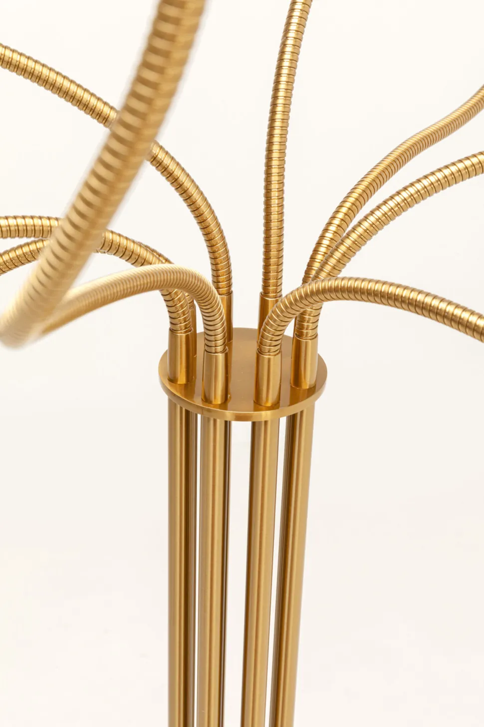 - Die Stehlampe wird mit ihrem kunstvoll geschwungenen Stahlgestell in Gold zum Highlight neben Sofa, Sessel oder im Flur