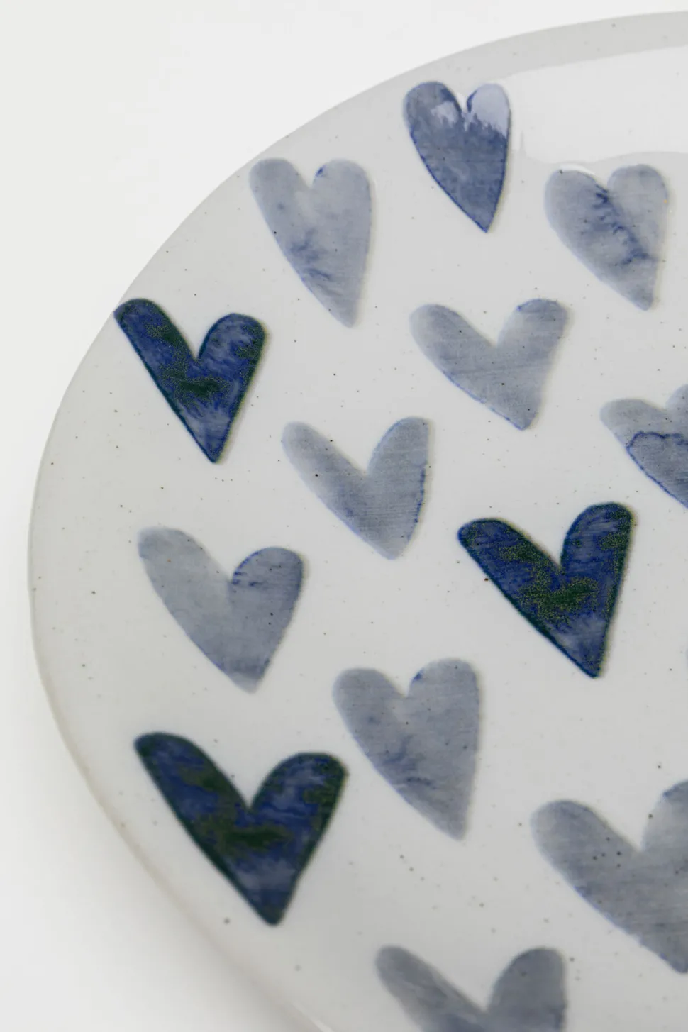 - Weißer Teller aus Keramik mit blauen Herz-Details, 3 x 28 x 28 Zentimeter (H/B/T)