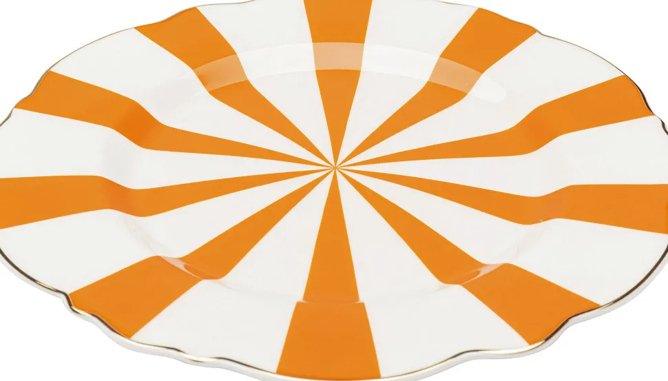 - Einzigartiger Teller aus Porzellan in Orange und Weiß, Ø22 cm