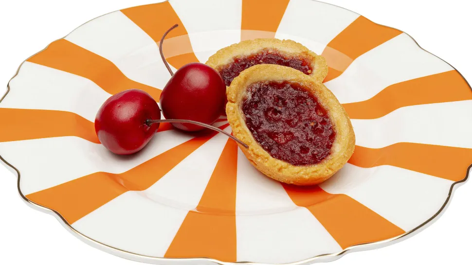 - Begeistert auf jedem Esstisch durch seine klassische Form und das geometrische Muster in kräftigem Orange