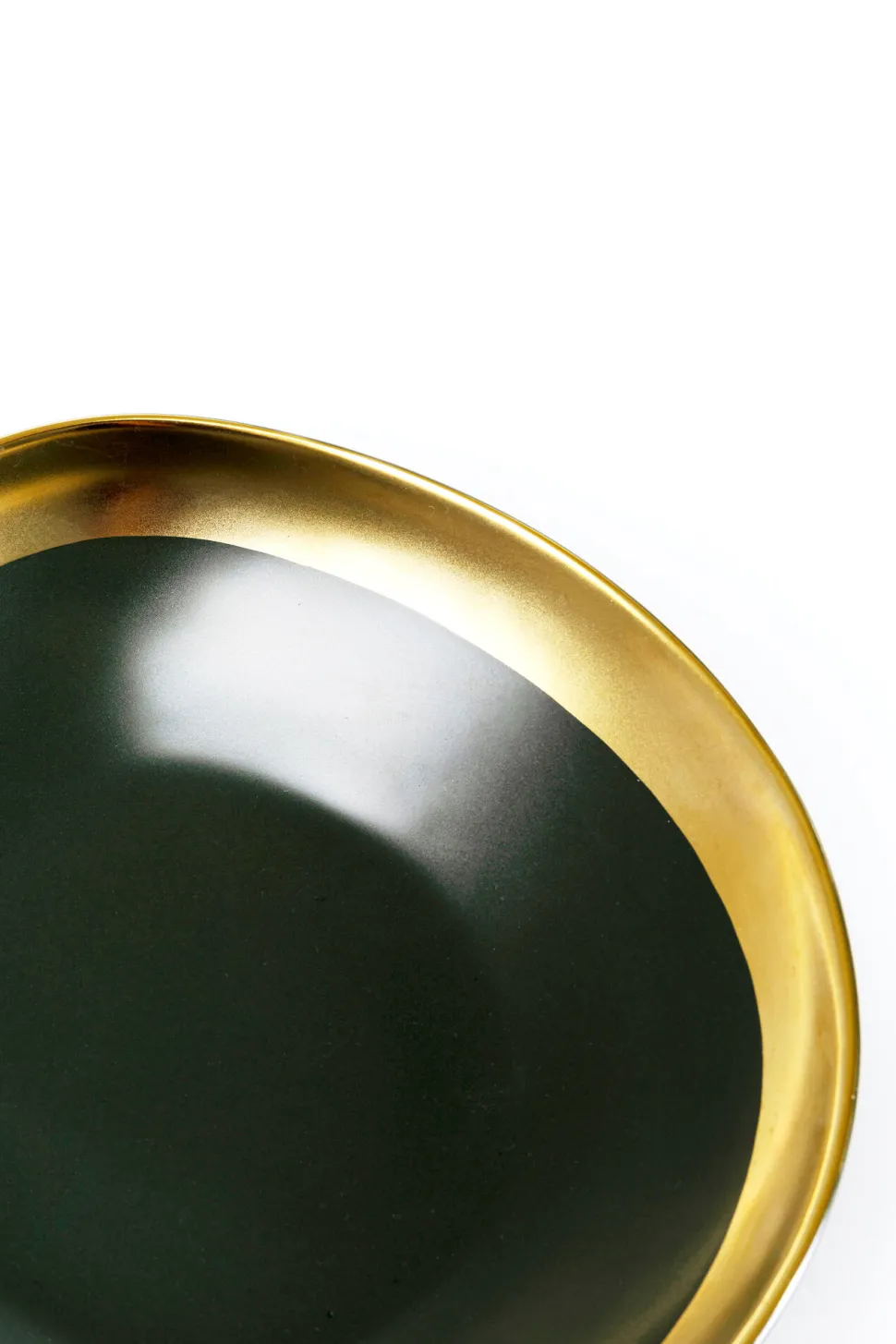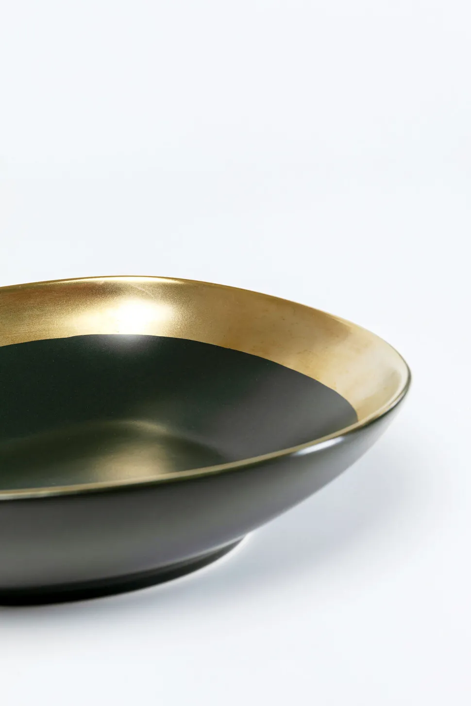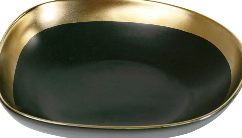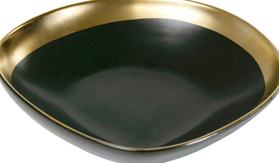 - Edle, von Hand aus Keramik hergestellte Geschirrserie in einem sehr dunklen Grün mit mattem Goldrand