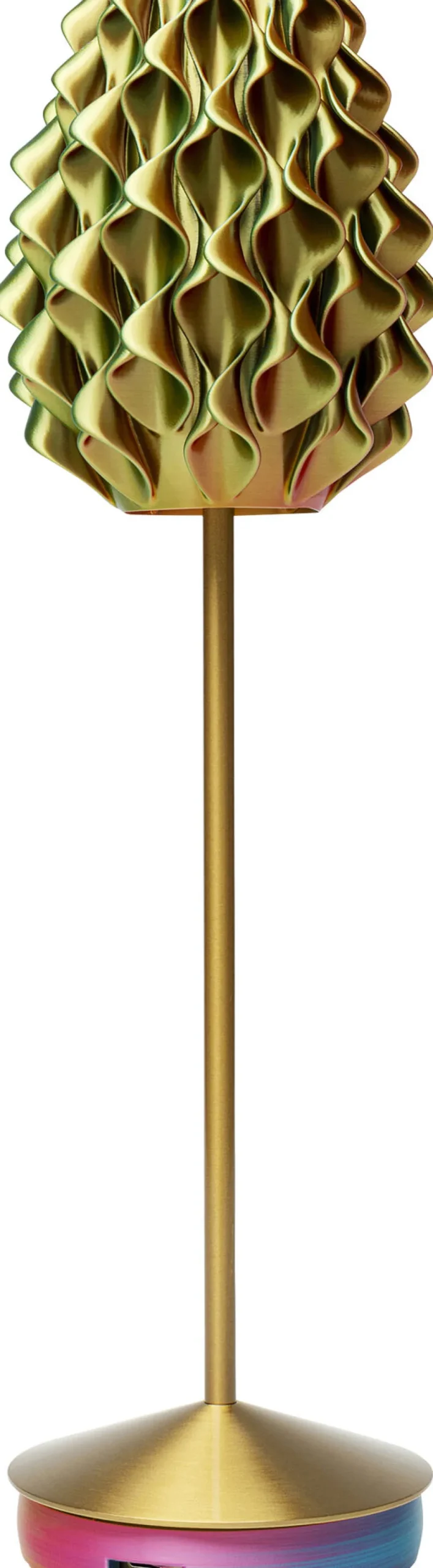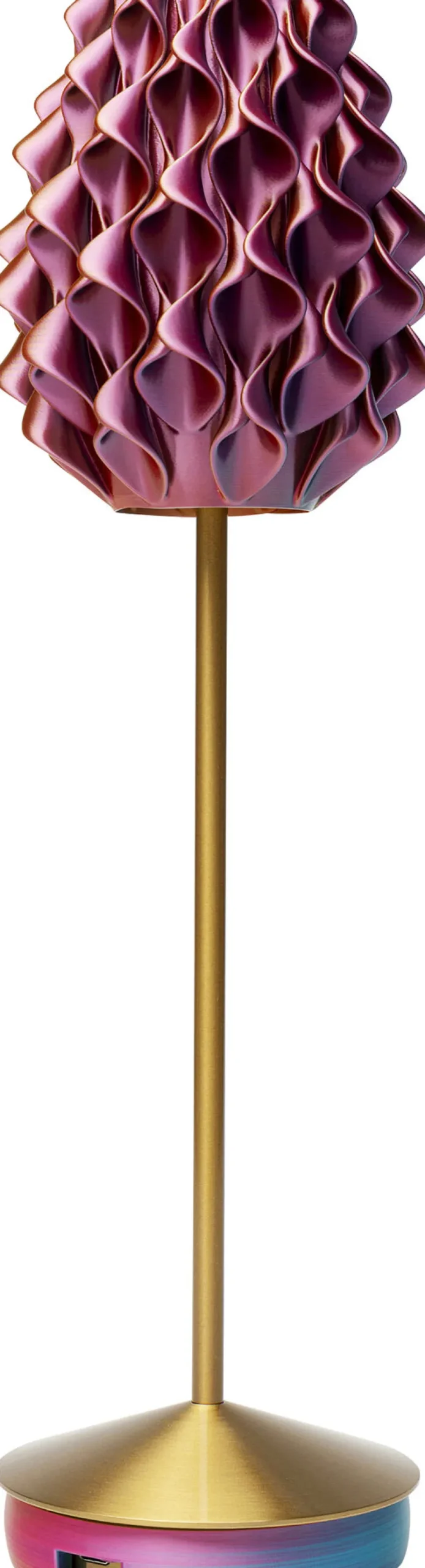 - Der Lampenschirm begeistert mit seiner außergewöhnlichen Form und schimmert je nach Lichteinfall in bunten Farben