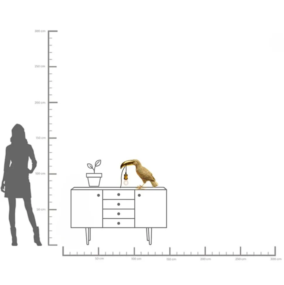- Goldfarbene Tischleuchte mit Vogelfigur, 42 x 18.5 x 38.5 Zentimeter (H/B/T)